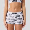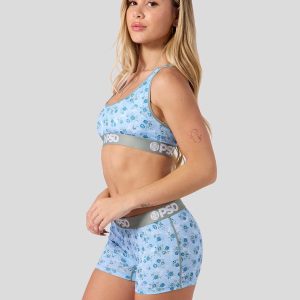 Featuring a layered floral pattern. this new pair is the perfect way to welcome spring. The Azure Floral Boy Short is made from a silky poly-blend with a comfortable full-coverage. keep-you-in fit. The PSD boy shorts are perfect for everyday wear and working out.