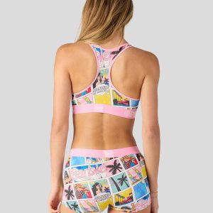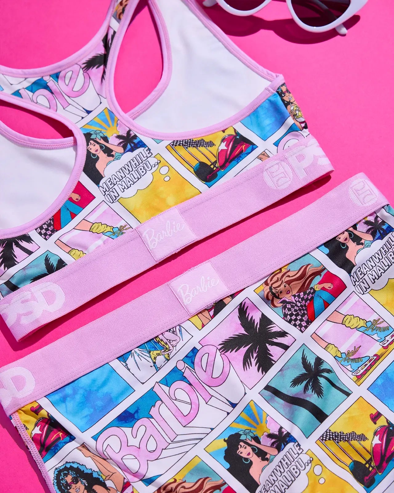 Sun-soaked. carefree. and all Barbie. The Malibu Sports Bra from Barbie x PSD is made from a silky poly-blend that’s breathable yet slightly compressive. bringing you the comfort and support you need for everything you get into.