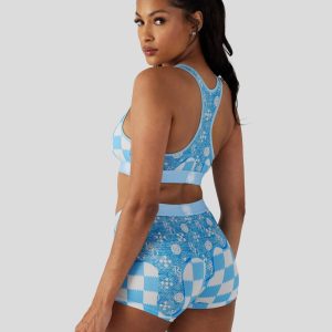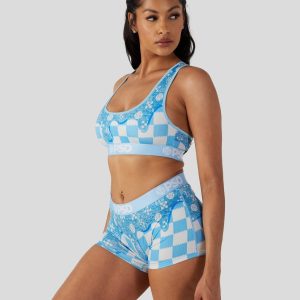 The Blue Denim Drip Sports Bra features a luxury-inspired print dripping onto blue and white checkers. Made from a silky poly blend. the PSD sports bra is breathable yet slightly compressive. bringing you the comfort and support you need for everything you get into. This style is available in sizes XS – 5XL.
