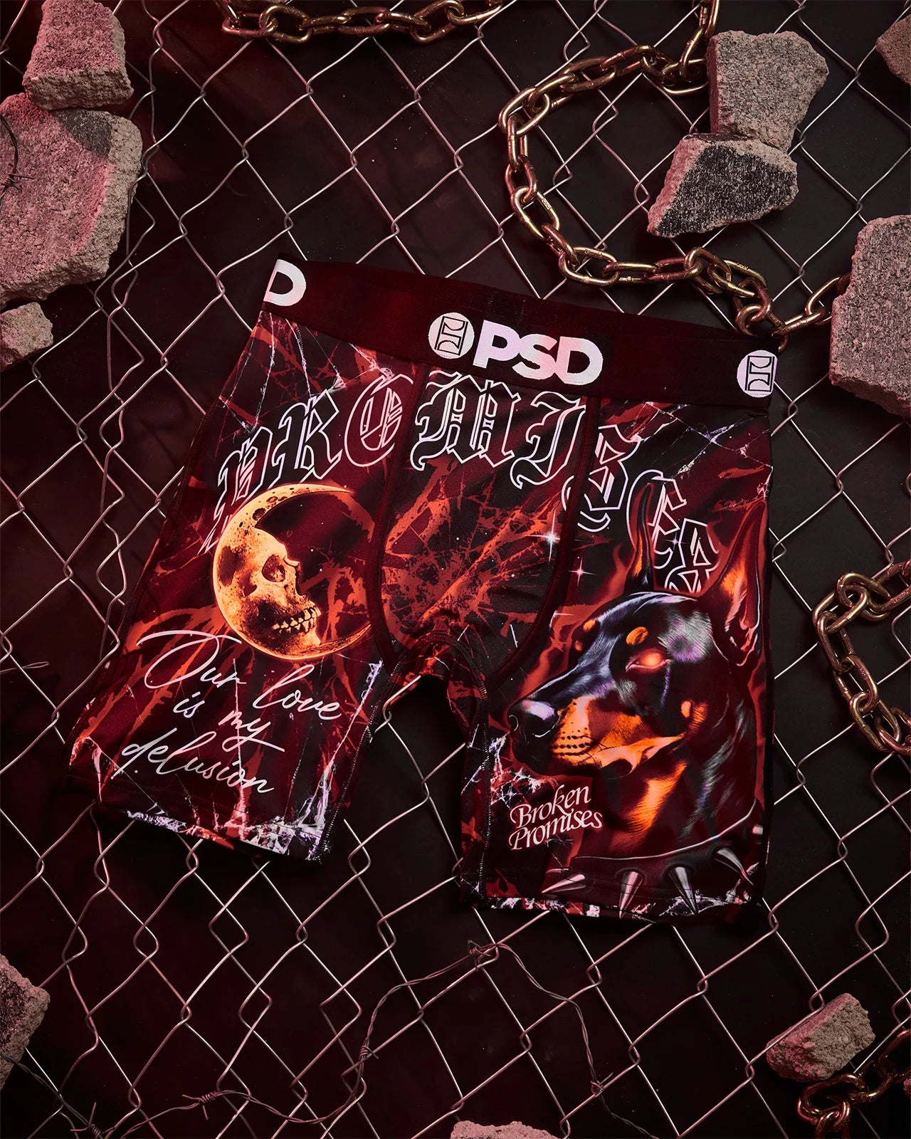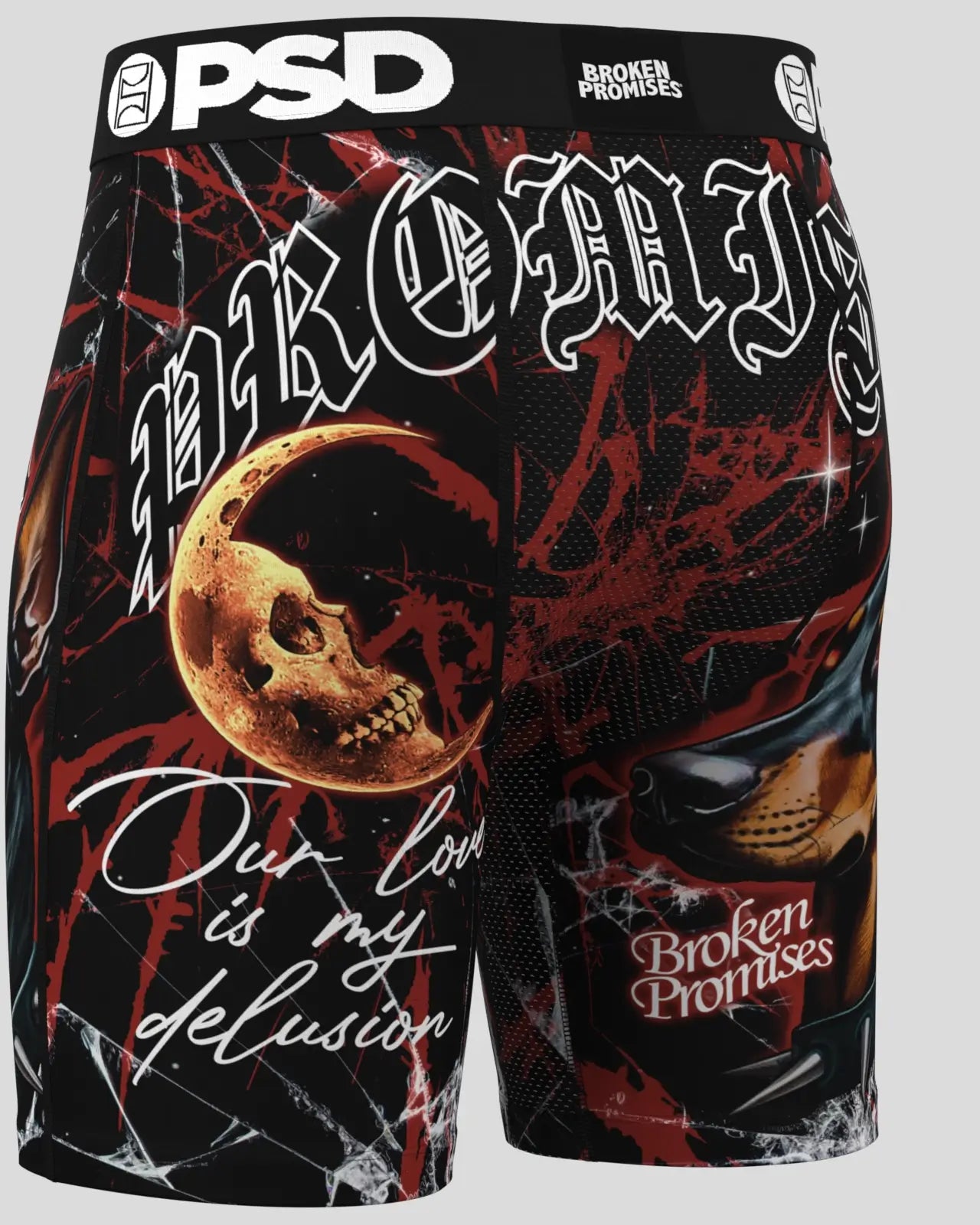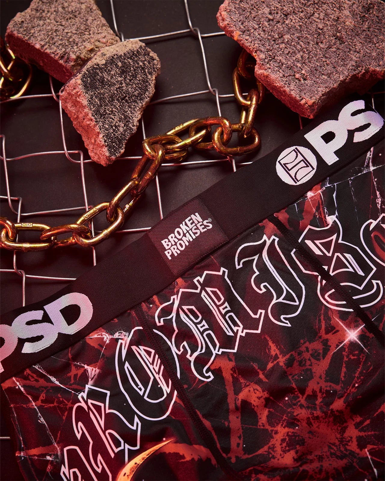 Love hurts. and this Broken Promises x PSD pair wears it loud. The Delusion briefs include our ultra-comfortable Signature WaistBand. a breathable MicroMesh pouch. and four-way stretch. The PSD 7 Standard Length Briefs won’t roll or ride and were built for everything. from everyday wear to your toughest workouts.