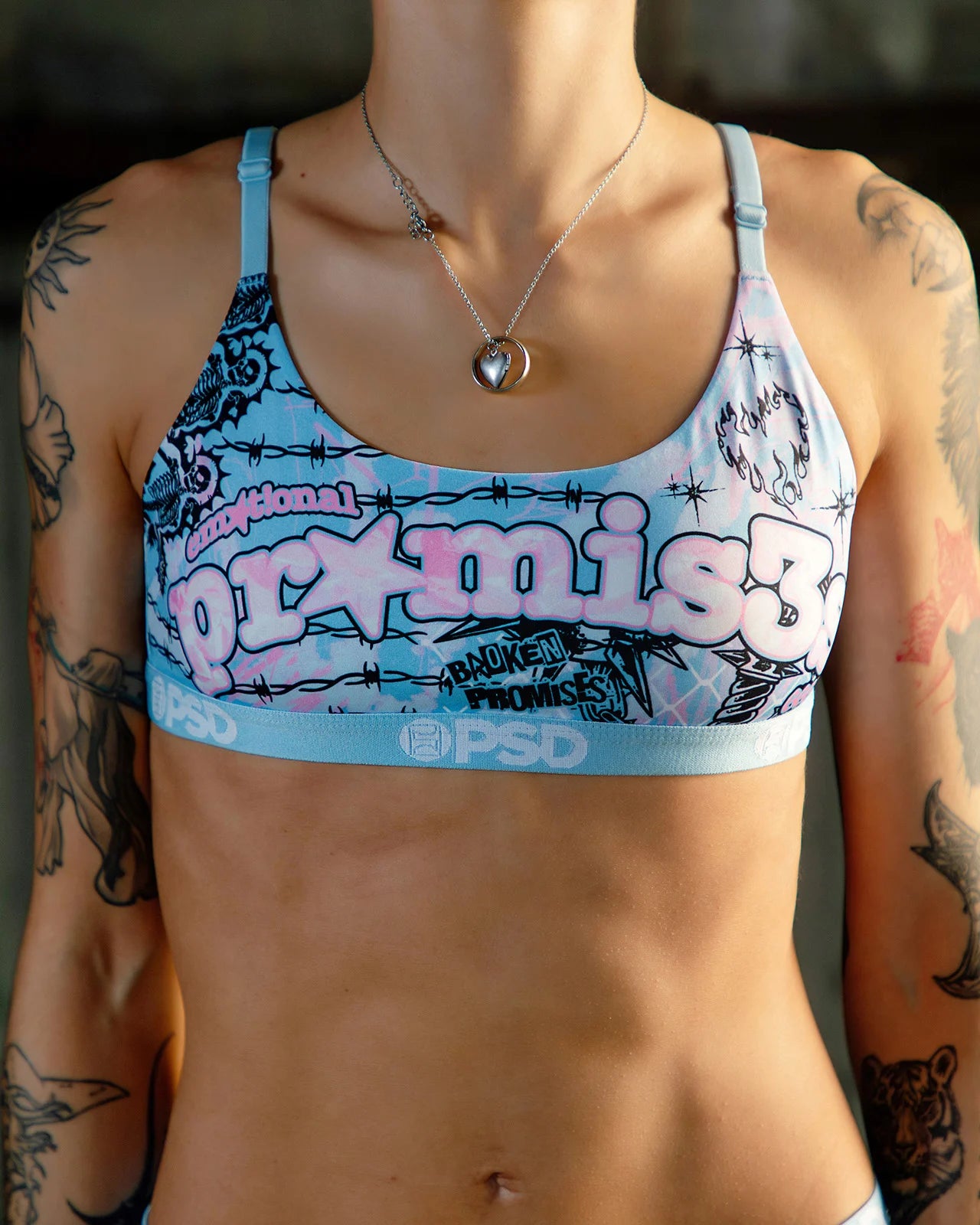 Gritty artwork. bold lettering. and a hit of emotional edge. This is Broken Promises x PSD in full force. The Forever Scoop Bralette almost feels like you’re not wearing a bra at all. It’s fully lined. and features include adjustable straps. a cute scoop neckline. and a soft microfiber band that won’t ride or rub.