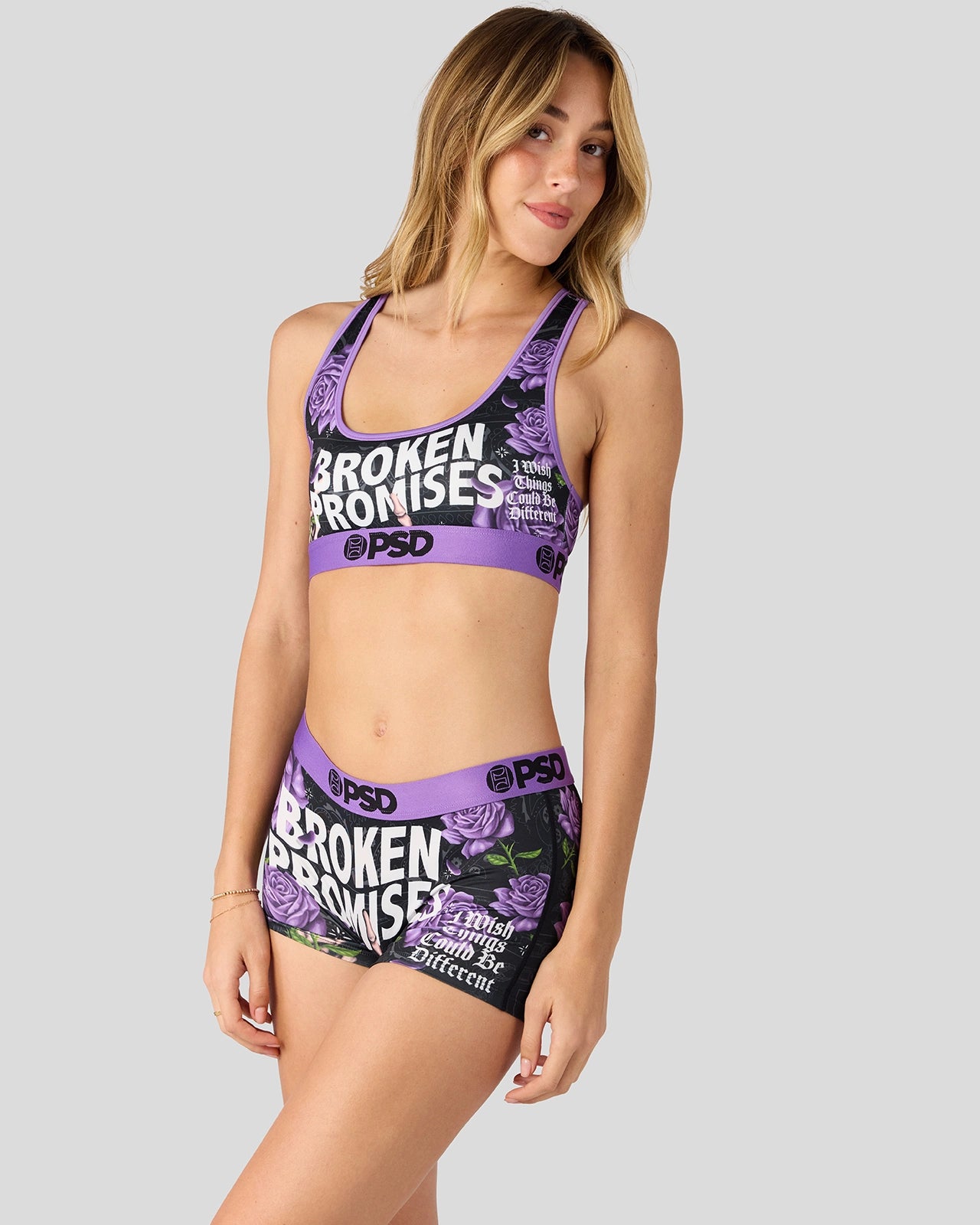 Keep your everyday rotation fueled by emotions with the latest from Broken Promises x PSD. The Wish Purp Boy Short is made from a silky poly-blend with a comfortable. full-coverage. keep-you-in fit. The PSD boy shorts are perfect for everyday wear and working out.