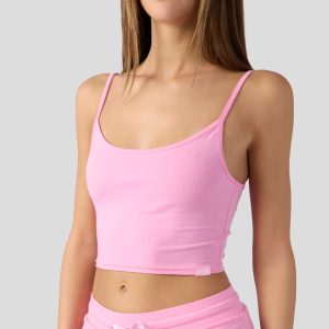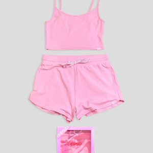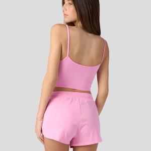 Your downtime just got a whole lot more comfortable (and cuter). Made of a super soft modal blend. the Bubblegum Pink Modal Cami Sleep Set includes a matching spaghetti strap cropped tank and dolphin hem shorts.