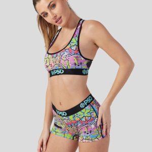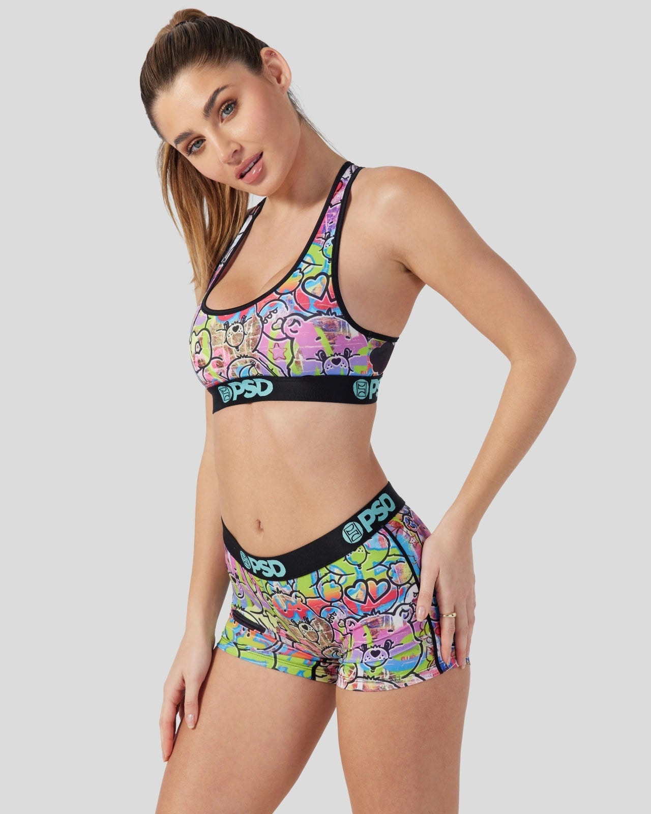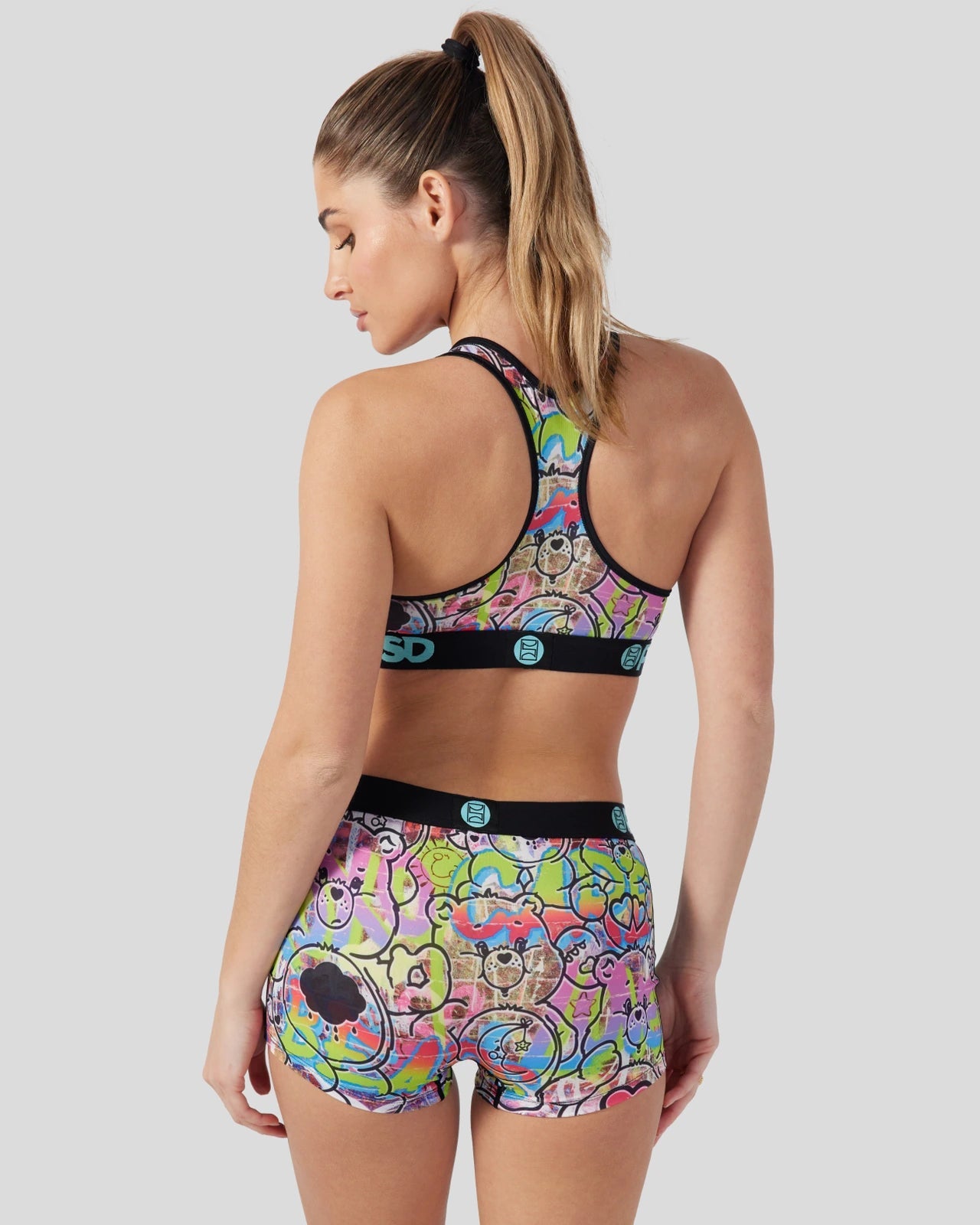 The cute and cuddly Care Bears get a gritty update with this graffiti-style new bra from Care Bears x PSD. The City Walls Sports Bra is made from a silky poly blend and is breathable yet slightly compressive. bringing you the comfort and support you need for everything you get into.