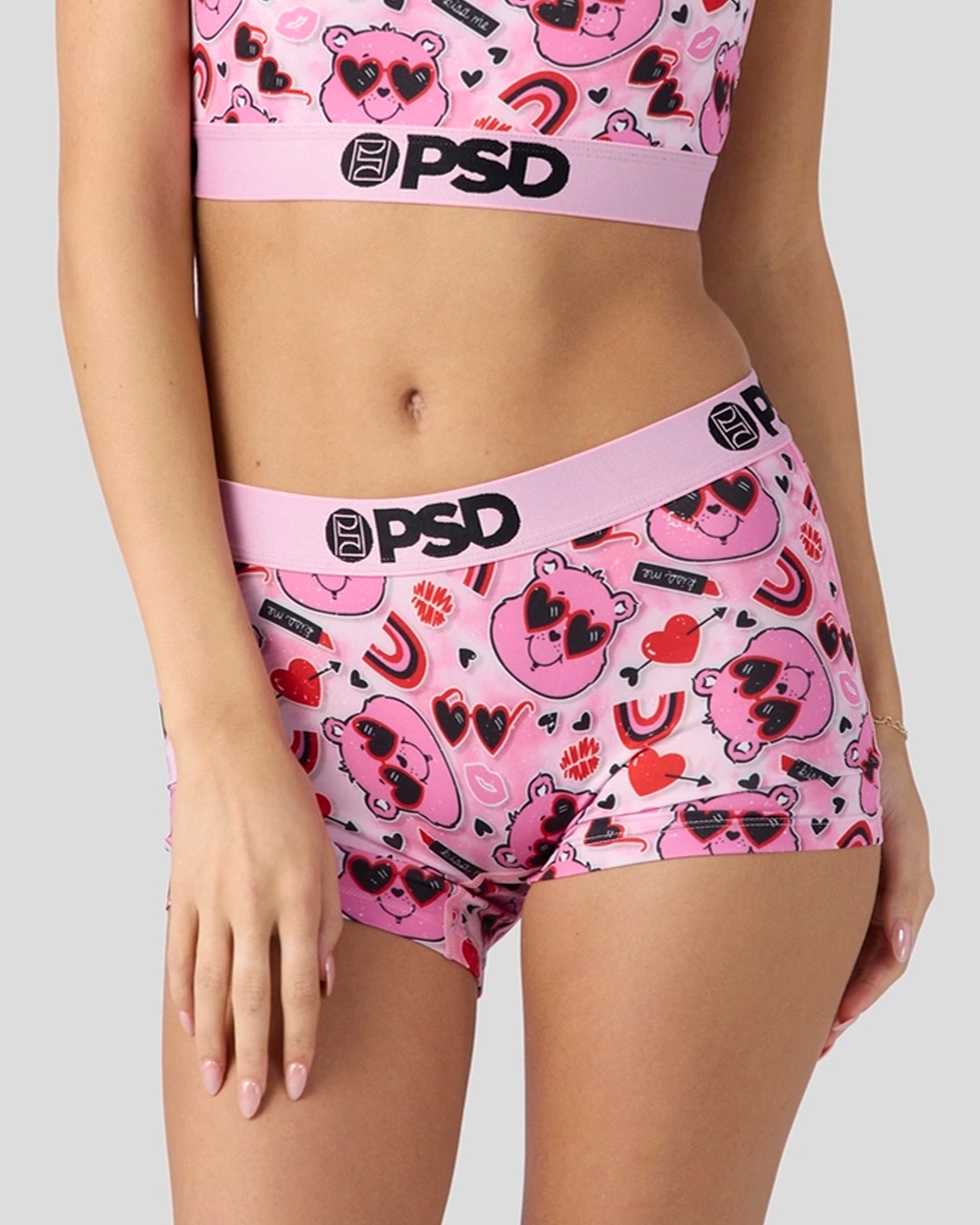 Love is in the bear with this new Valentine’s Day-ready drop from Care Bears x PSD. The Love Bears Boy Short is made from a silky poly blend with a comfortable full coverage. keep-you-in fit. The PSD boy shorts are perfect for everyday wear and working out.