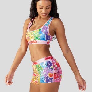 Don’t miss this colorful new drop from Care Bears x PSD. The Rainbow Sports Bra is made from a silky poly blend with a comfortable full coverage. keep-you-in fit.