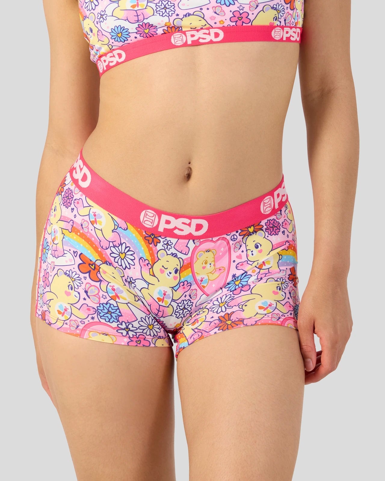 Show yourself some love and grab this new drop from Care Bears x PSD. The Self-Care Bear Boy Short is made from a silky poly blend with a comfortable full coverage. keep-you-in fit. The PSD boy shorts are perfect for everyday wear and working out.