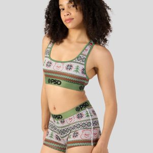 The holidays with a Care Bear twist. The Ugly Sweater Sports Bra from the Care Bears x PSD is made from a silky poly blend and is breathable yet slightly compressive. bringing you the comfort and support you need for everything you get into.