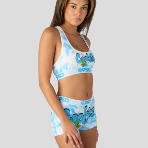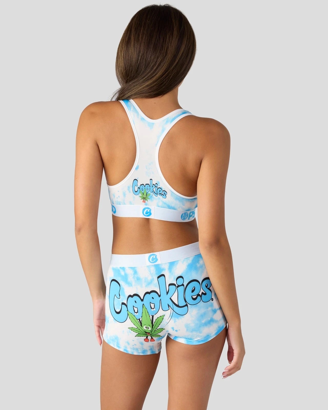 Feel elevated in this new drop from Cookies x PSD. Featuring a tie-dye print. the Happy Sports Bra is made from a silky poly blend and is breathable yet slightly compressive. bringing you the comfort and support you need for everything you get into.