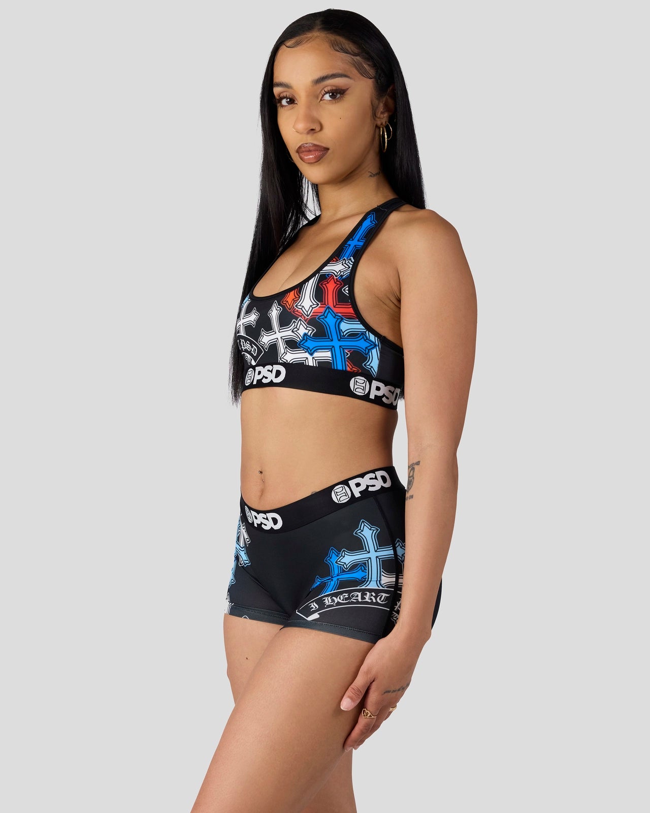 The Cool Hearts Boy Short is made from a silky poly blend with a comfortable full coverage. keep-you-in fit. The PSD boy shorts are perfect for everyday wear and working out.