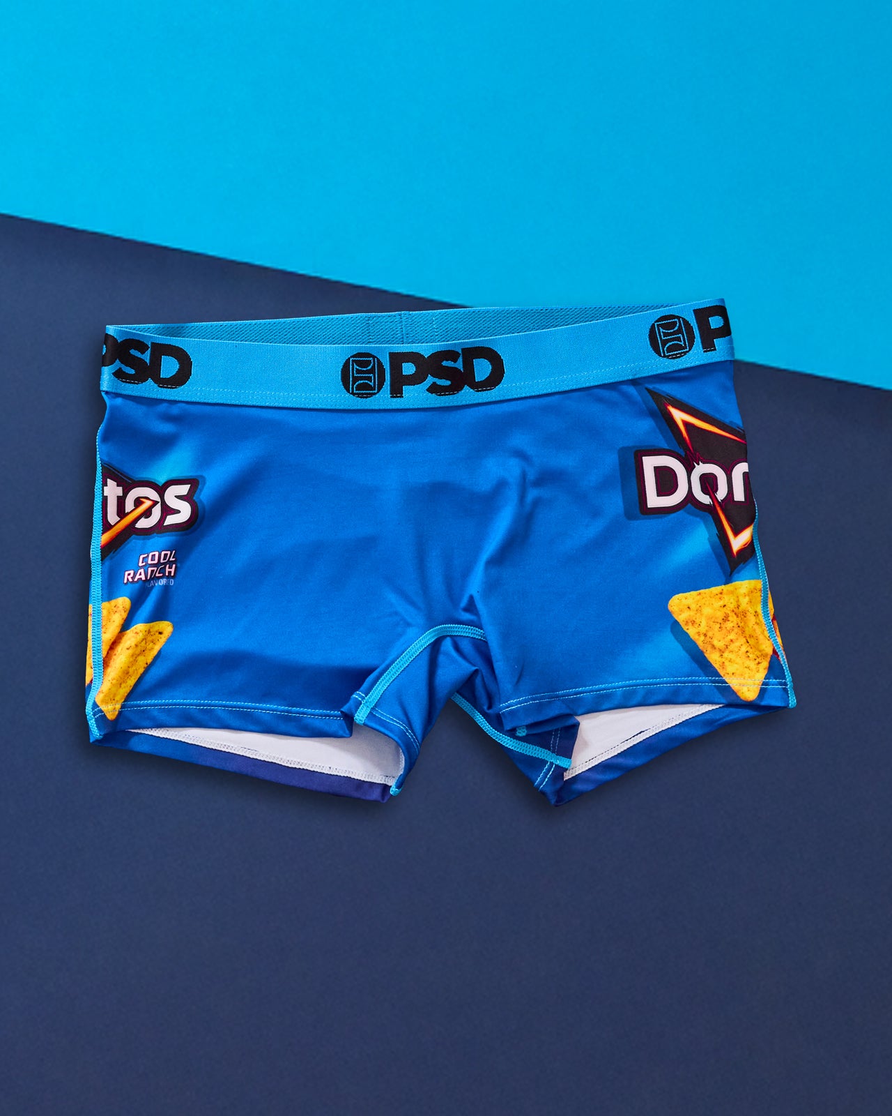Zesty and fresh. Cool Ranch flavor meets PSD comfort. From Doritos x PSD. the Cool Ranch Boy Short is made from a silky poly-blend with a comfortable. full-coverage. keep-you-in fit. The PSD boy shorts are perfect for everyday wear and working out.