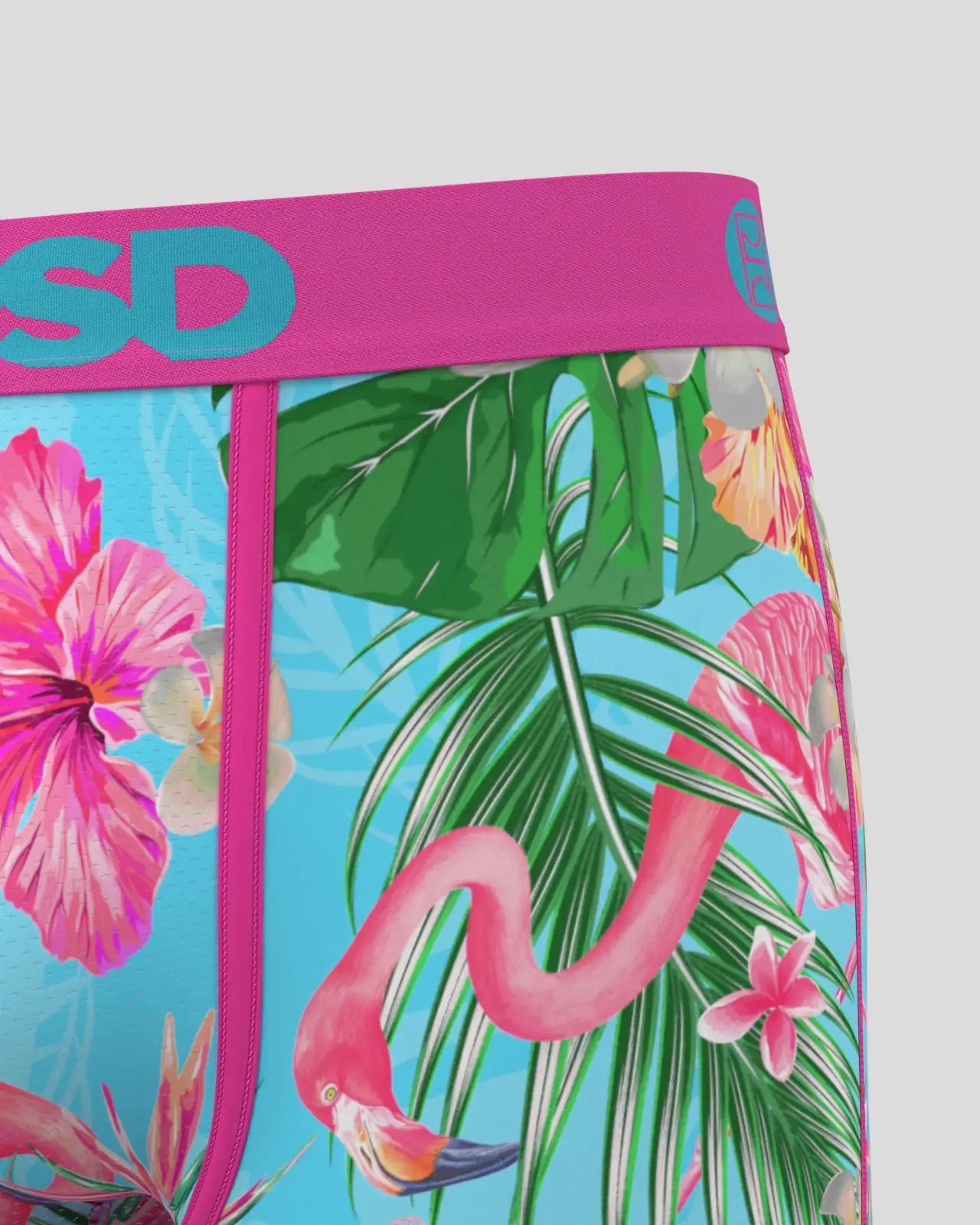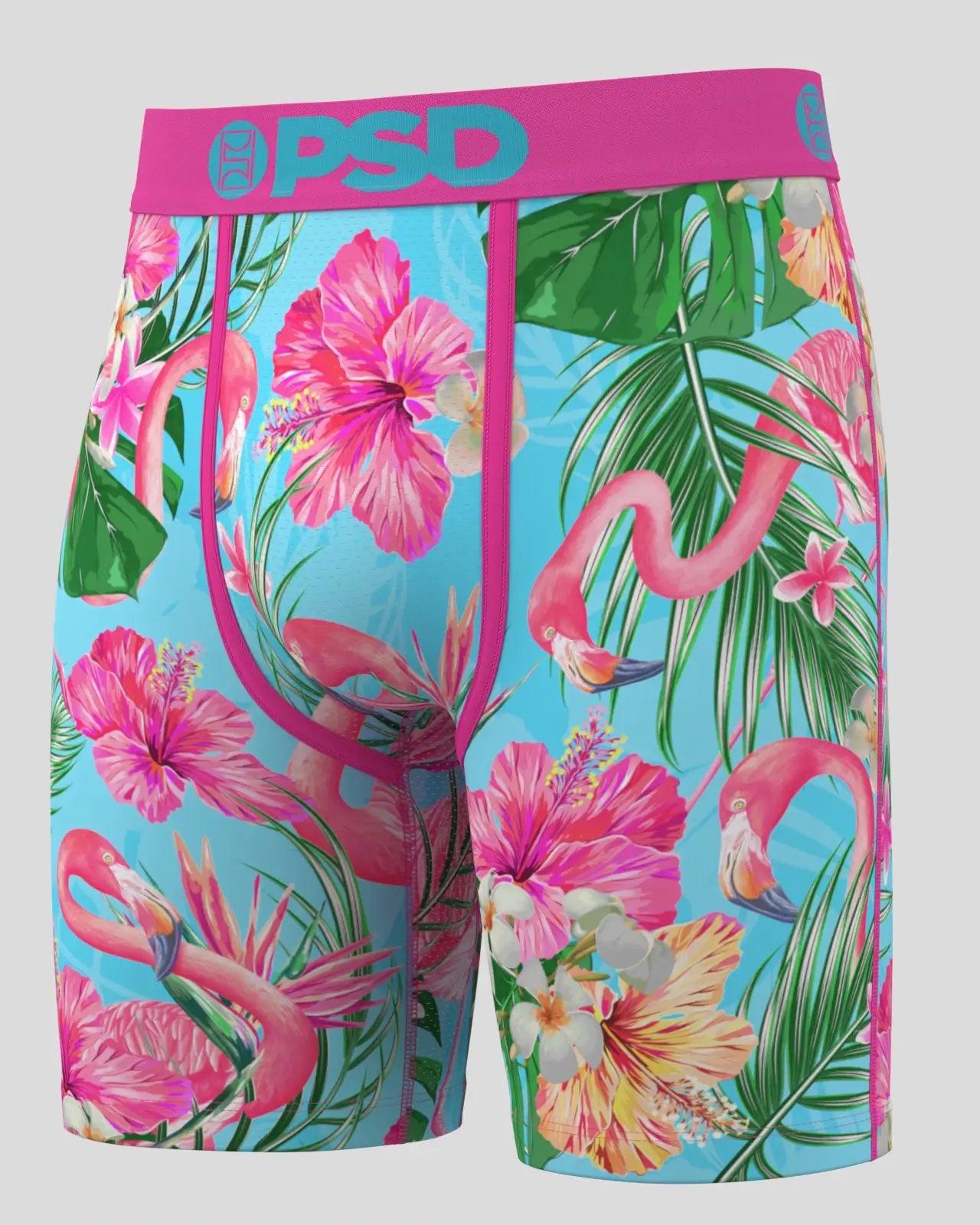 This tropical-printed pair is like a wearable vacation. The Flamingoing briefs include our ultra-comfortable Signature WaistBand. a breathable MicroMesh pouch. and four-way stretch. The PSD 7 Standard Length Briefs won’t roll or ride and were built for everything. from everyday wear to your toughest workouts.