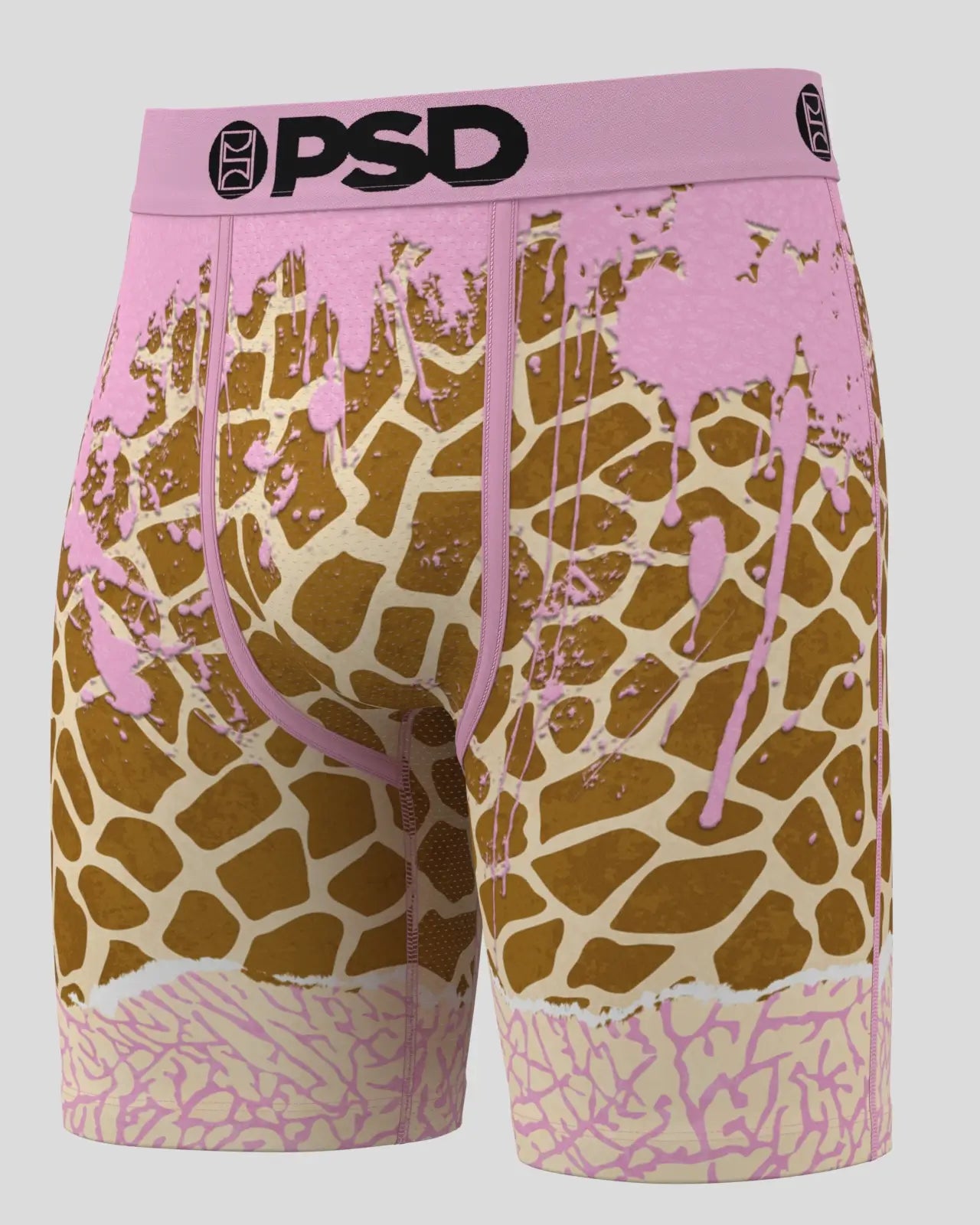 Featuring a streetwear-inspired giraffe print. the Geoffrey briefs include our ultra-comfortable Signature WaistBand. a breathable MicroMesh pouch. and four-way stretch. The PSD 7 Standard Length Briefs won’t roll or ride and were built for everything. from everyday wear to your toughest workouts.