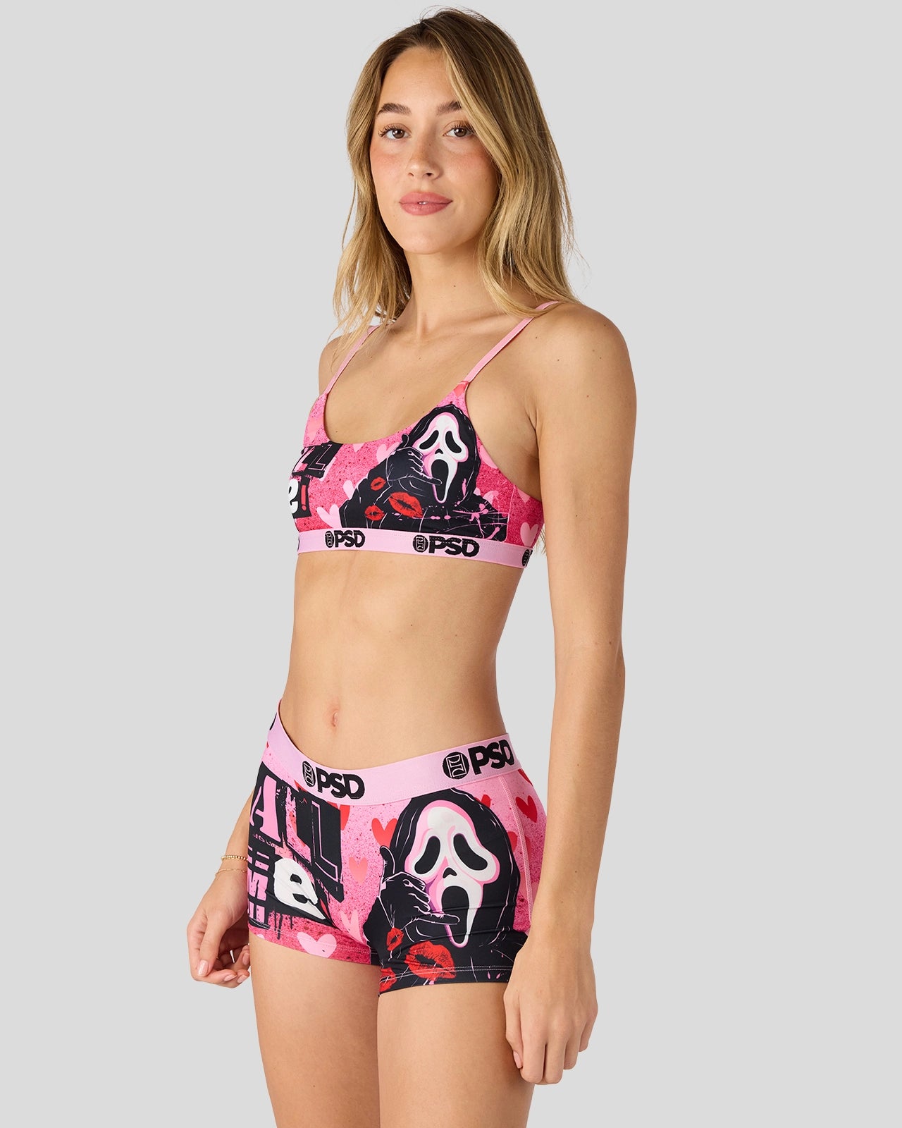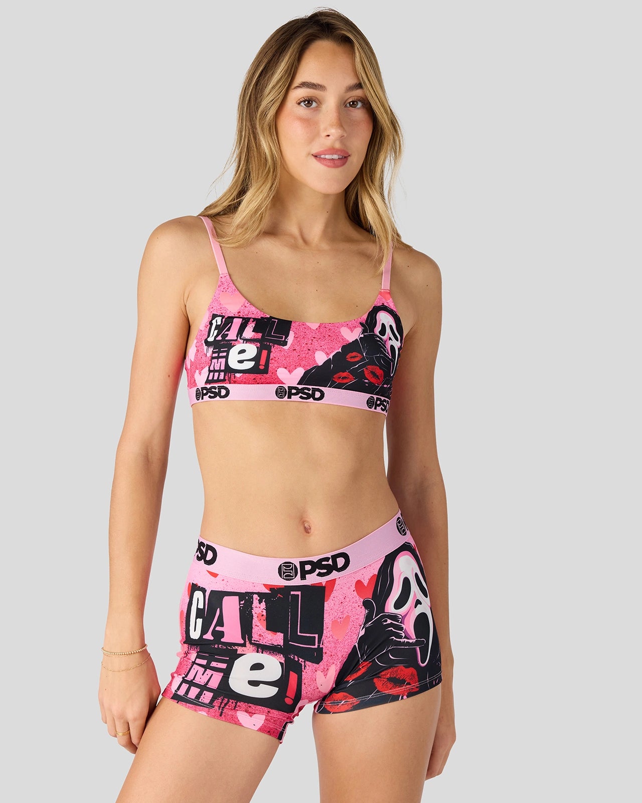 This look from Ghost Face x PSD brings major slasher energy to your rotation. The Call Me Scoop Bralette almost feels like you’re not wearing a bra at all. It’s fully lined. and features include adjustable straps. a cute scoop neckline. and a soft microfiber band that won’t ride or rub.