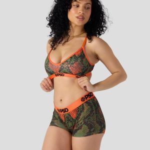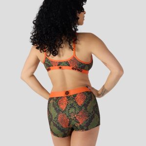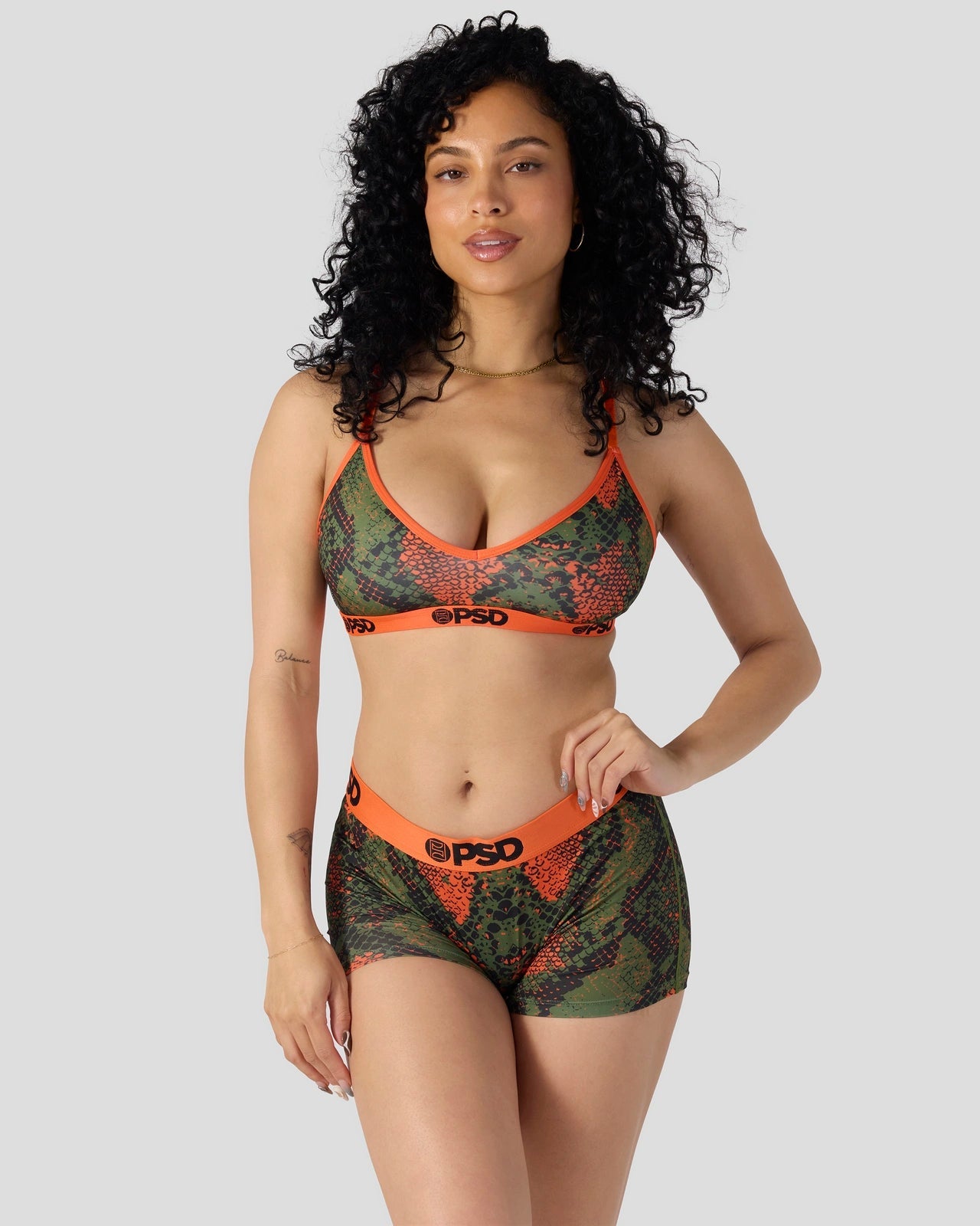 Slither your way into this new snakeskin-inspired look. Made of soft and silky fabric. the Green Snake V-Neck Bralette is light and breathable so you barely feel like it’s there. It gives you full coverage and medium support when you need to wear a bra but don’t want to.