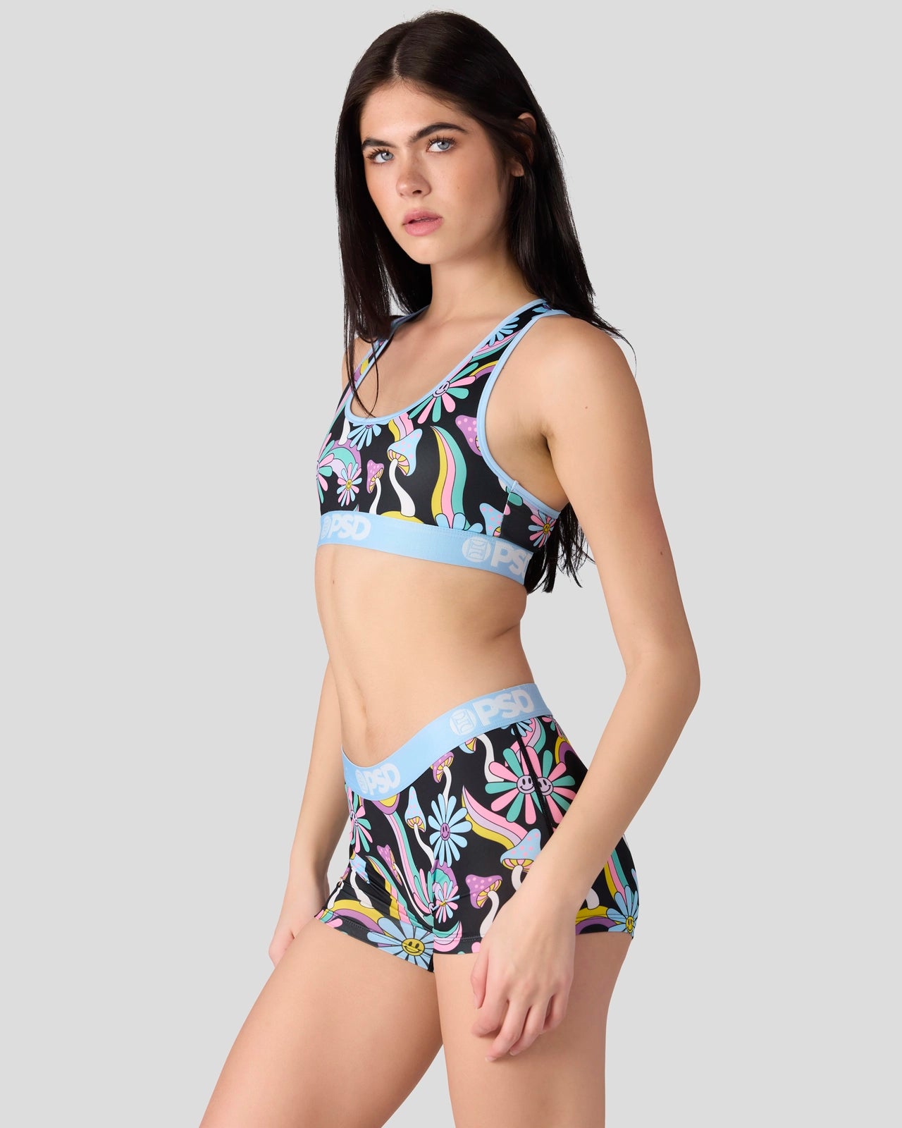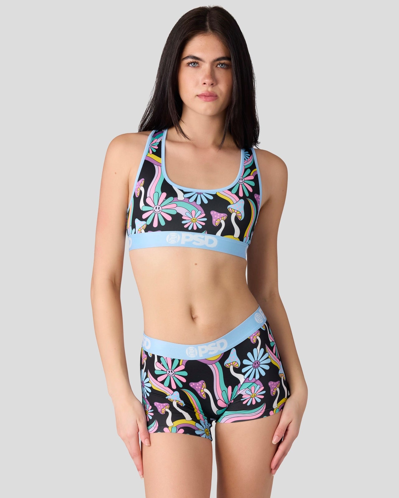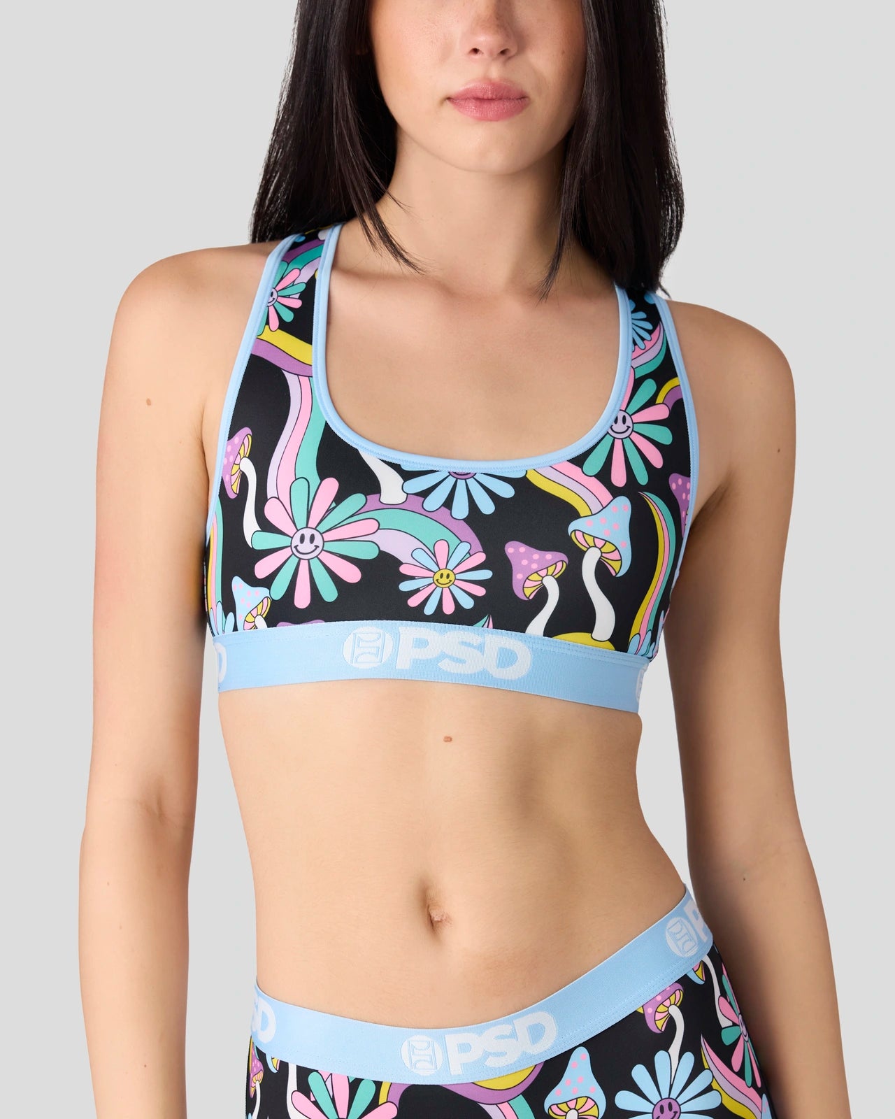 Ready to take a trip? The Happy Shrooms Sports Bra is made from a silky poly blend that’s breathable yet slightly compressive. bringing you the comfort and support you need for everything you get into.
