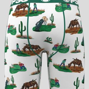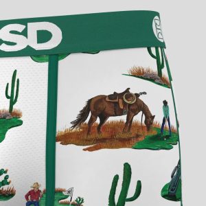 Fore meets frontier. This Hooey x PSD pair brings cowboy spirit to the green. The Cowboy Golf briefs include our ultra-comfortable Signature WaistBand. a breathable MicroMesh pouch. and four-way stretch. The PSD 7 Standard Length Briefs won’t roll or ride and were built for everything. from everyday wear to your toughest workouts.