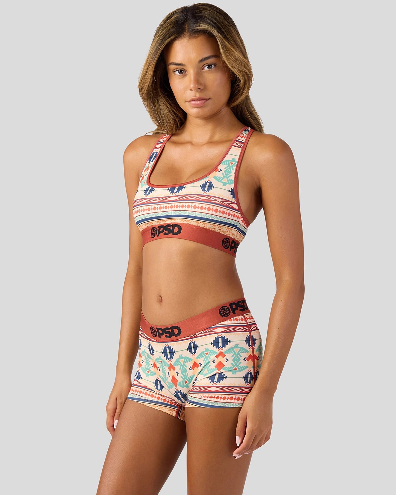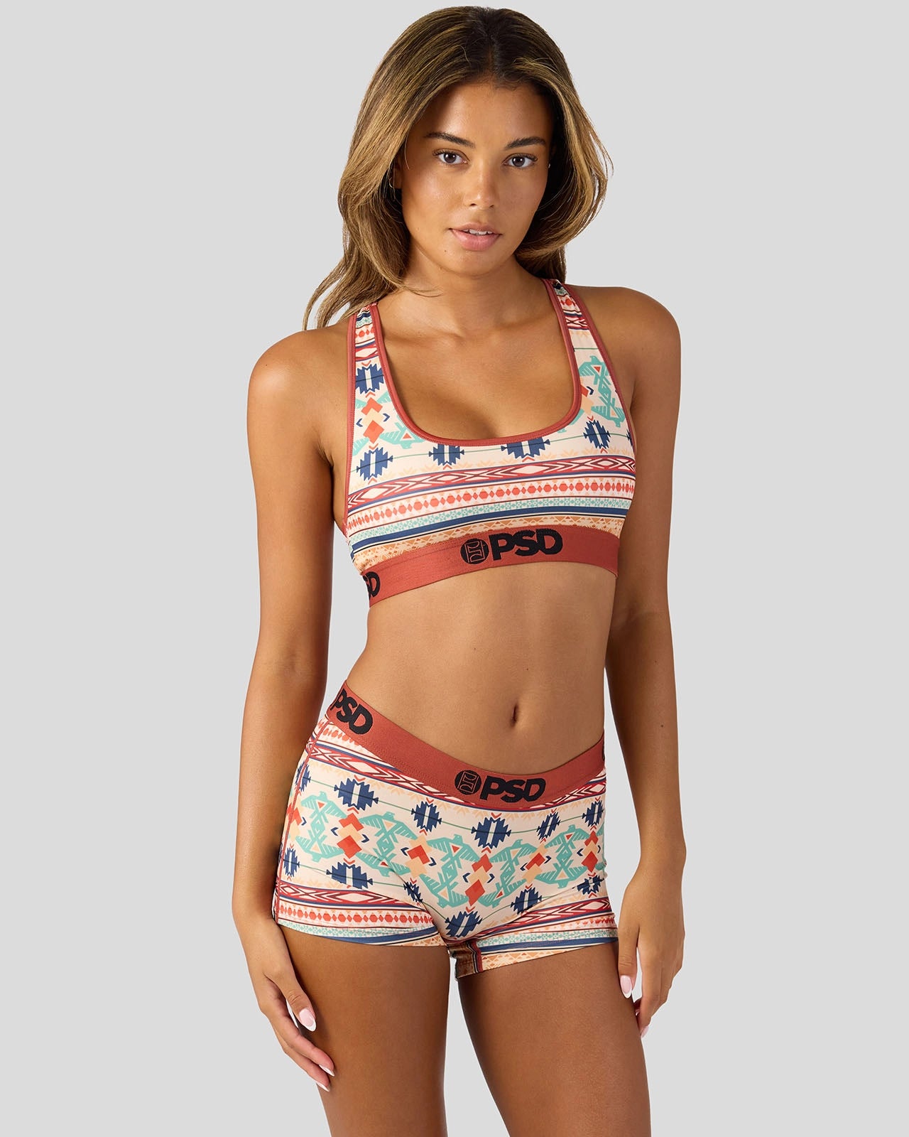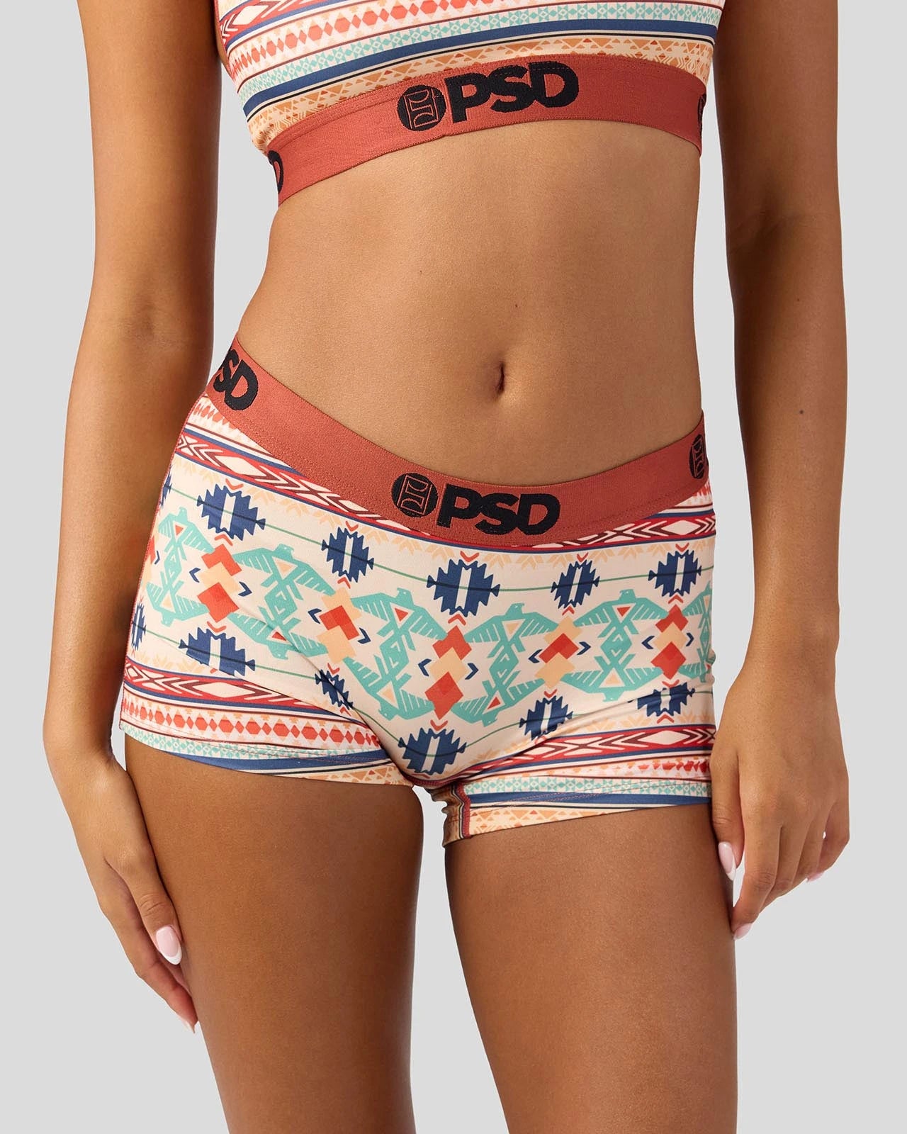 Drawn from one of their Southwestern-inspired prints. the Thunderbird Boy Short from Hooey x PSD is made from a silky poly blend with a comfortable full-coverage. keep-you-in fit. The PSD boy shorts are perfect for everyday wear and working out.