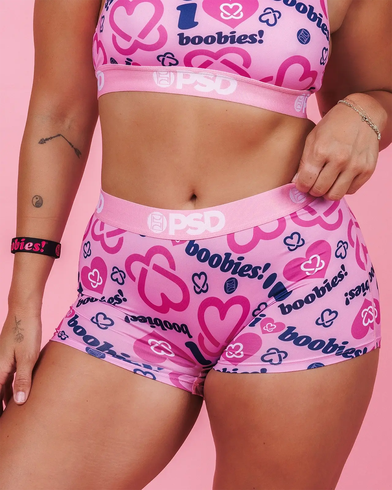 From Keep a Breast x PSD. the Keep a Breast Boy Short is made from a silky poly blend with a comfortable full coverage. keep-you-in fit. The PSD boy shorts are perfect for everyday wear and working out.