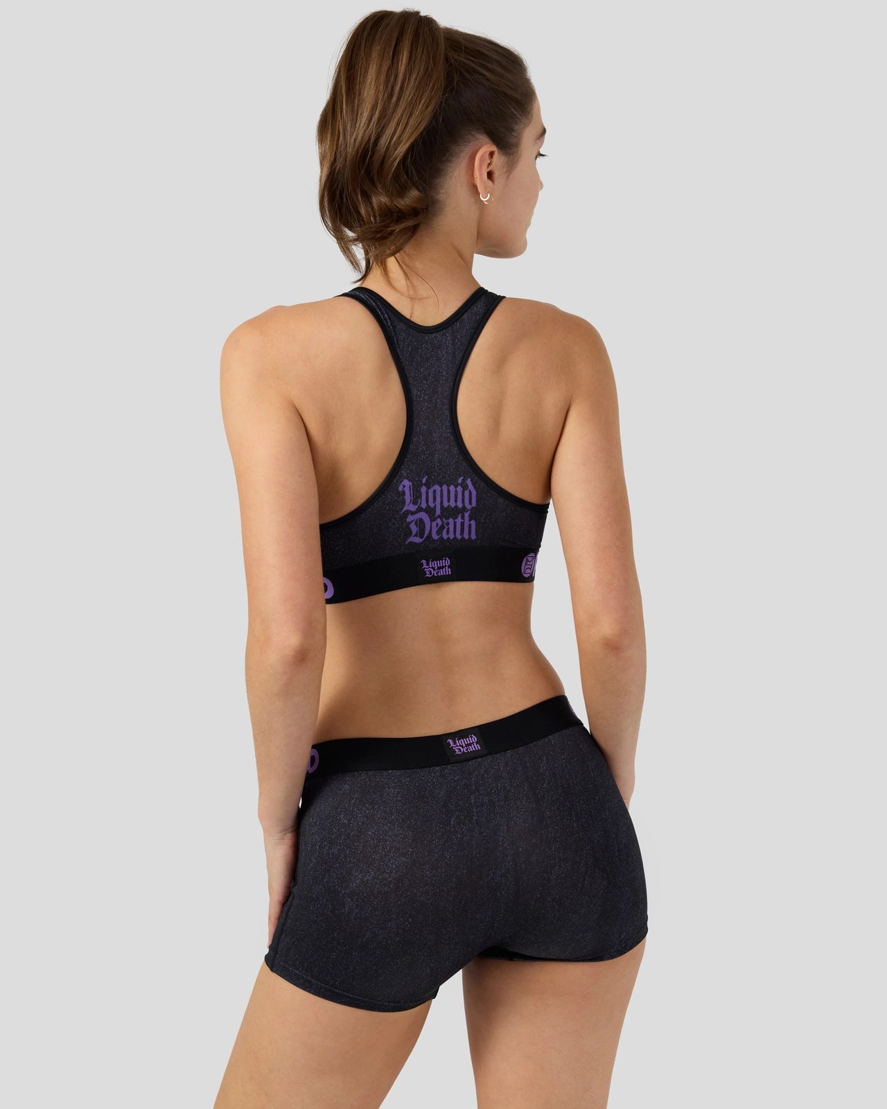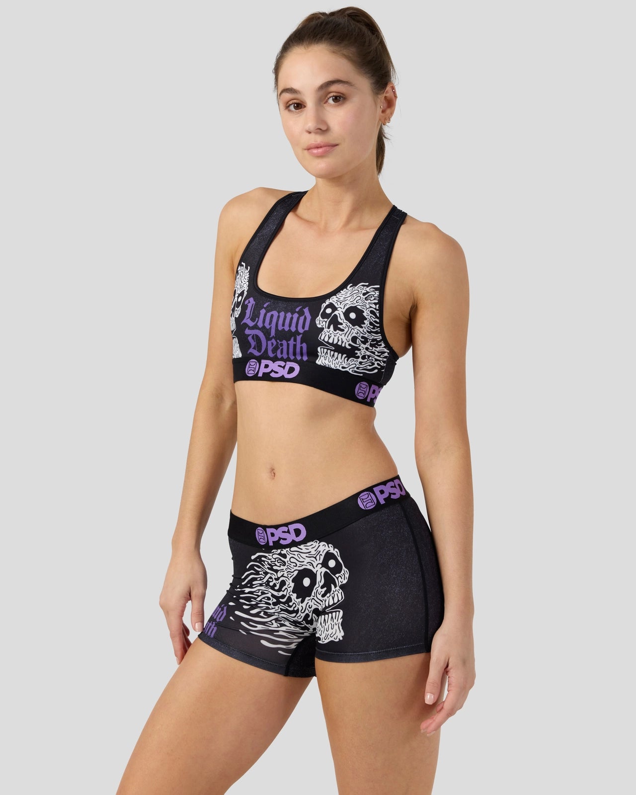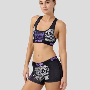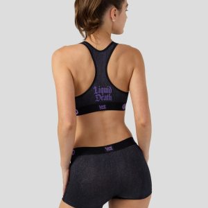 From Liquid Death x PSD. this new drop is face-melting good. The Liquid Death Sports Bra is made from a silky poly blend with a comfortable full coverage. keep-you-in fit.