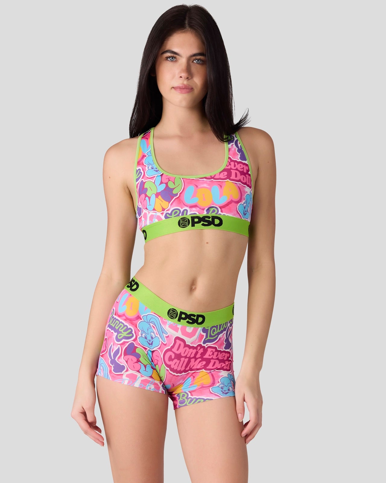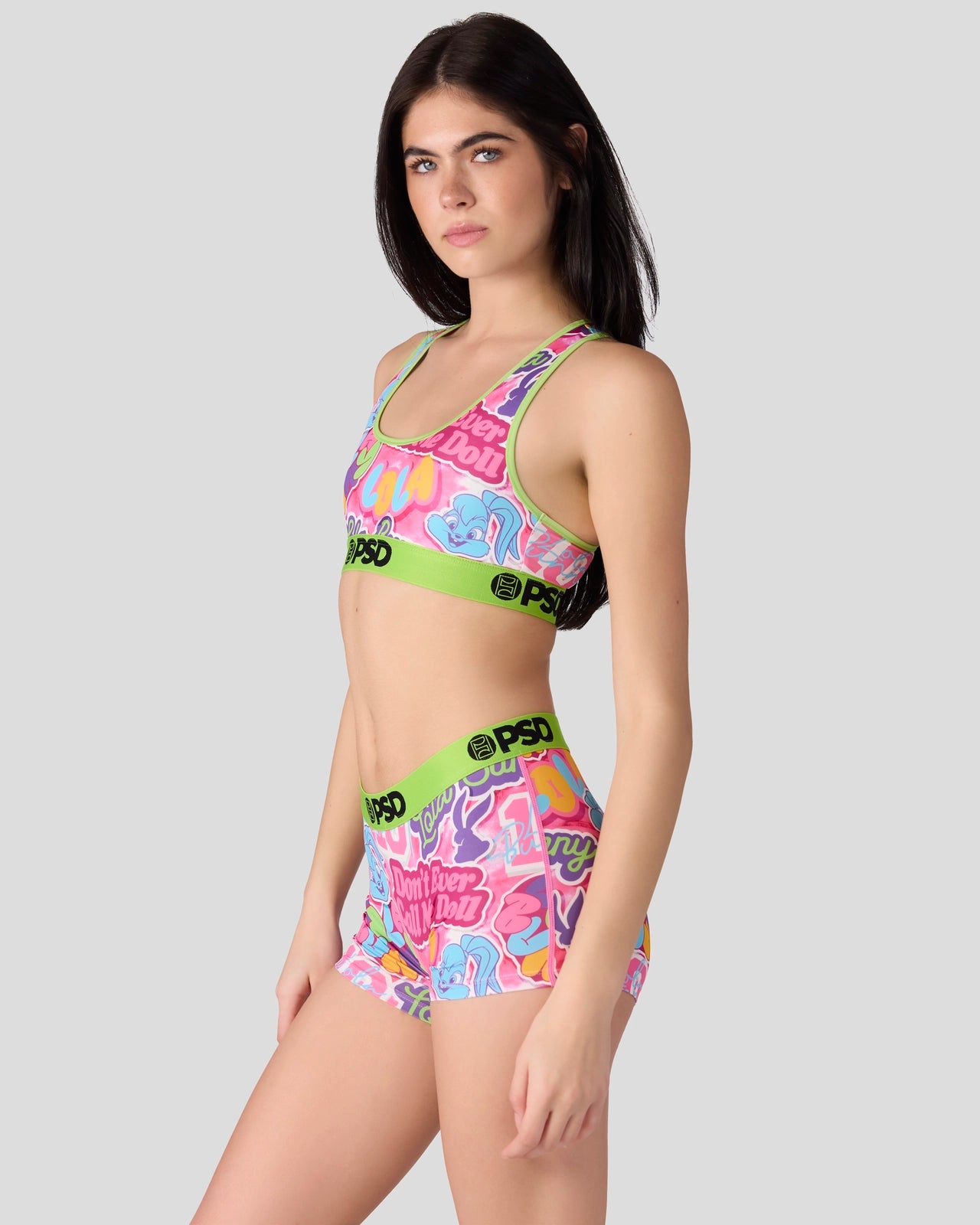 The Don’t Call Me Doll Sports Bra from Looney Tunes x PSD is made from a silky poly blend and is breathable yet slightly compressive. bringing you the comfort and support you need for everything you get into.