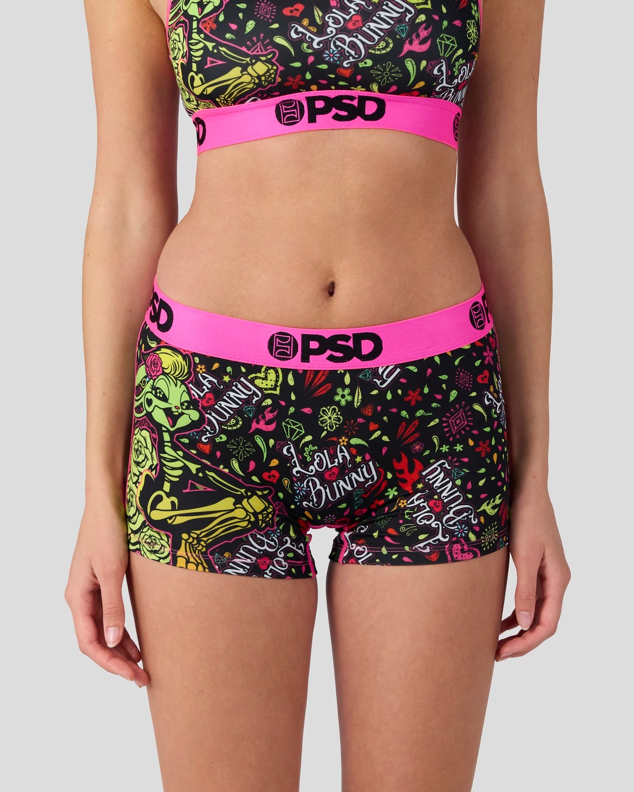 Looney Tunes x PSD gives Lola Bunny a glow-up for Día de Los Muertos. The Lola Muerte Boy Short is made from a silky poly blend with a comfortable full coverage. keep-you-in fit. The PSD boy shorts are perfect for everyday wear and working out.