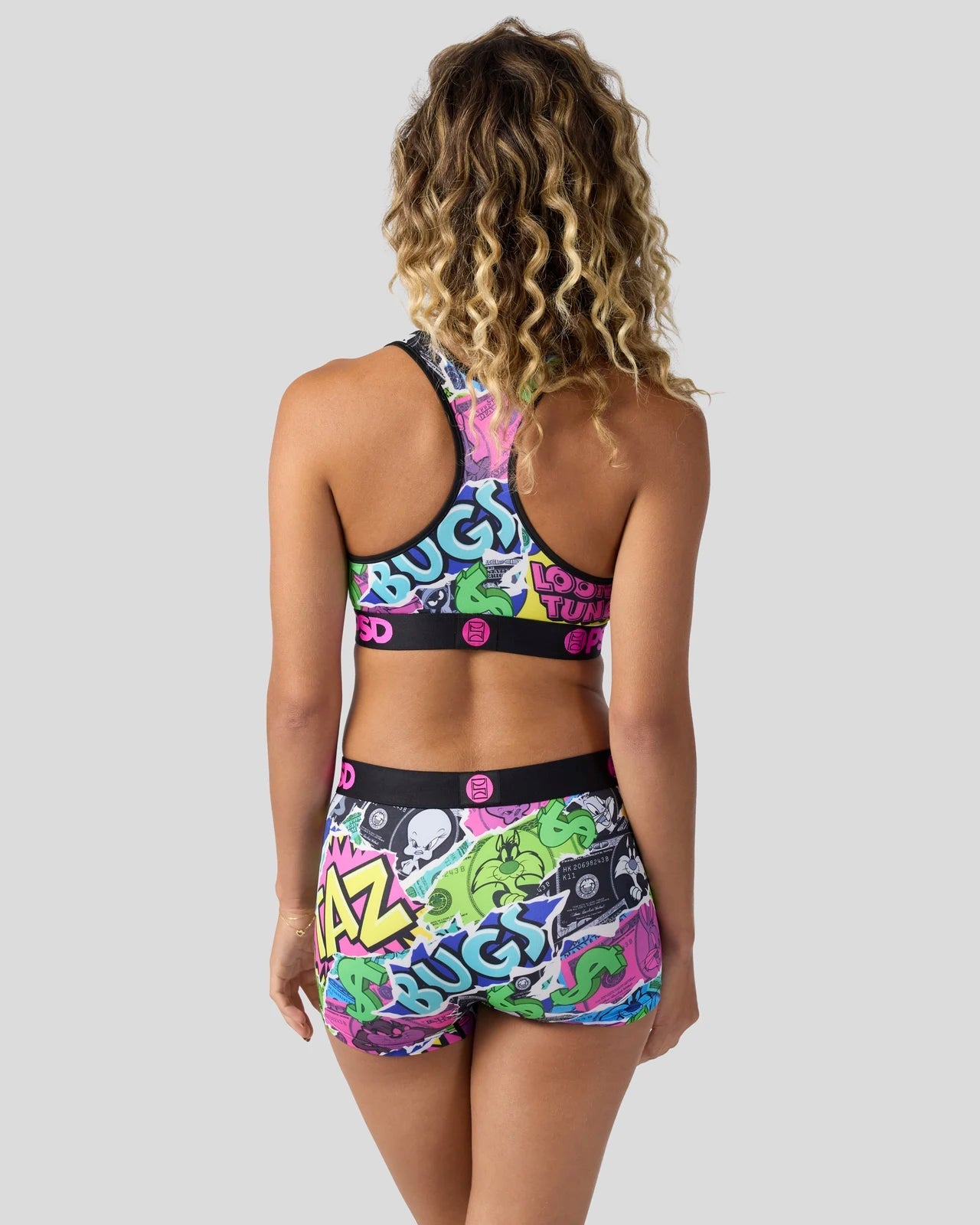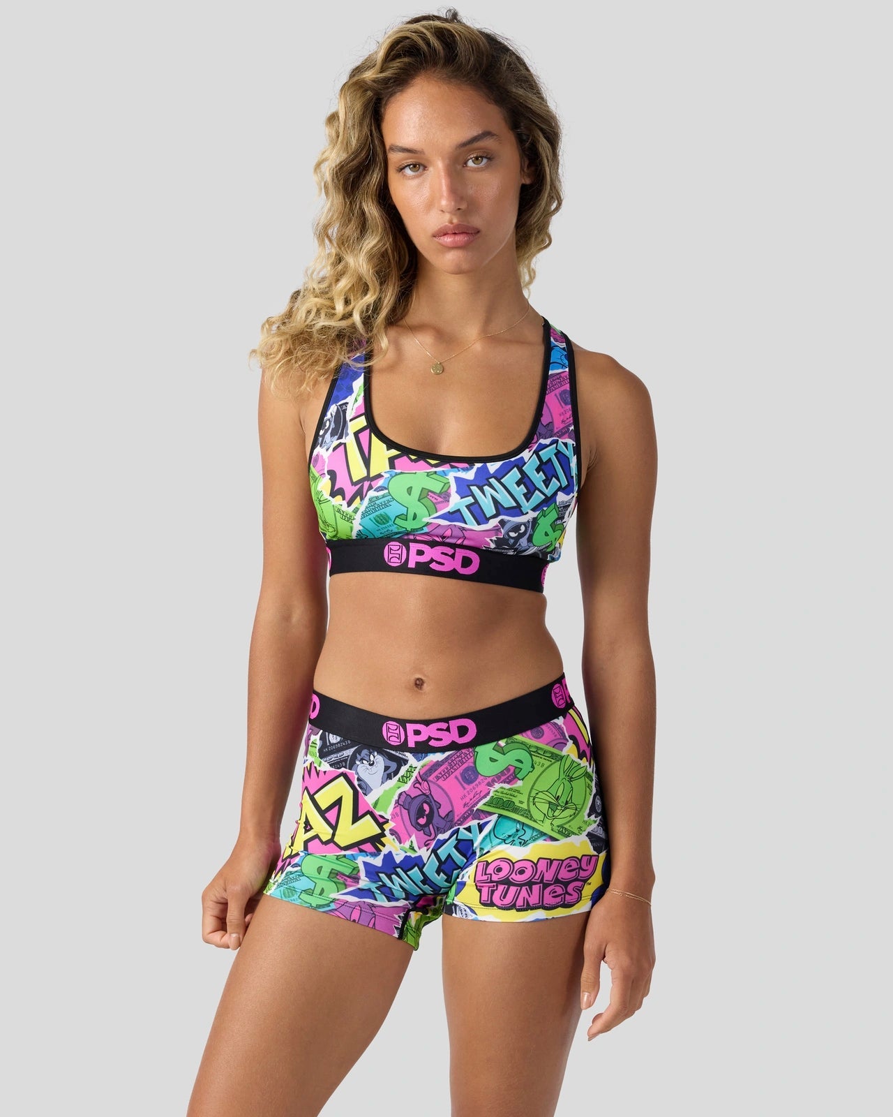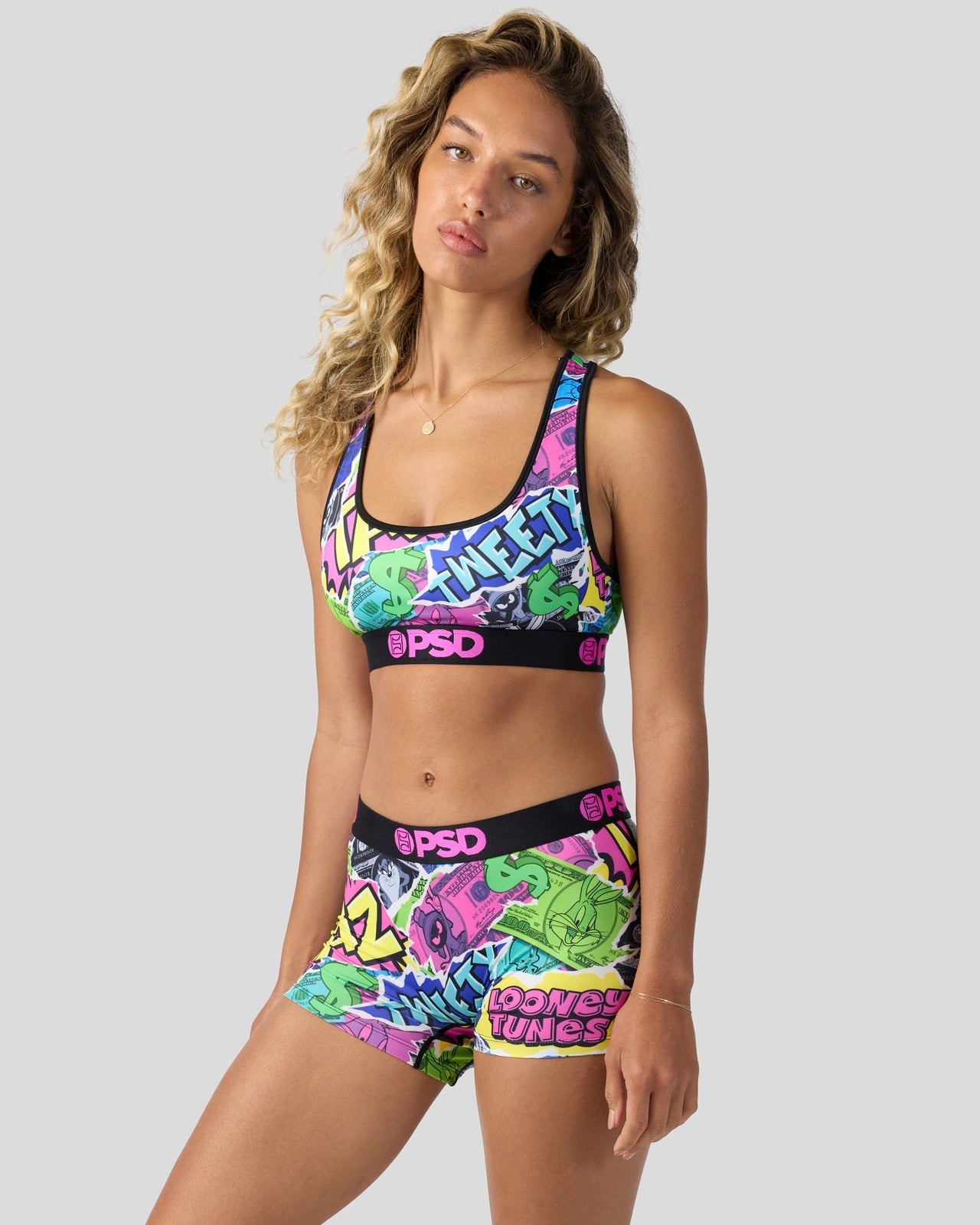 Get your Bugs bag with this new money-themed look from Looney Tunes x PSD. The Looney Money Boy Short is made from a silky poly blend with a comfortable full coverage. keep-you-in fit. The PSD boy shorts are perfect for everyday wear and working out.