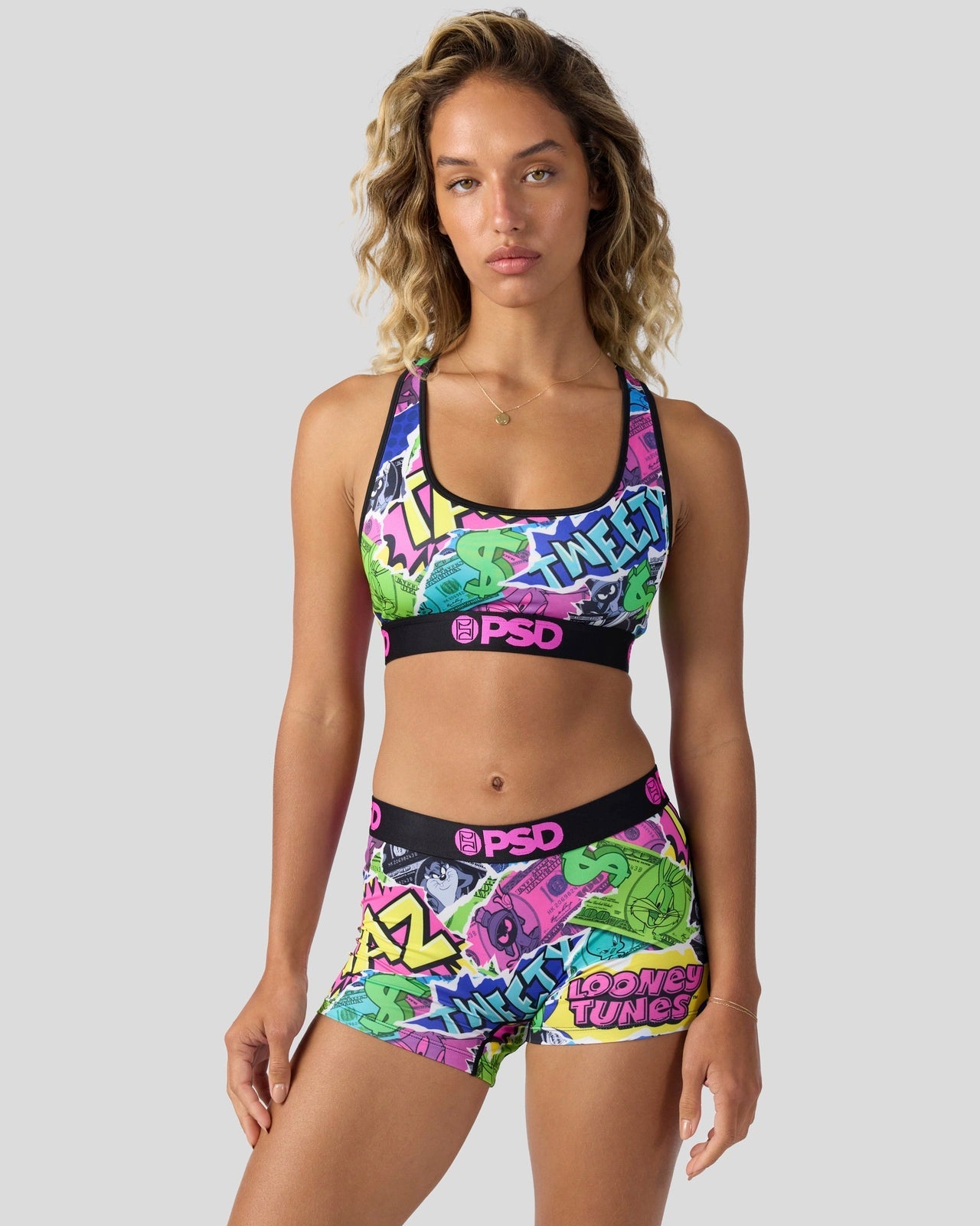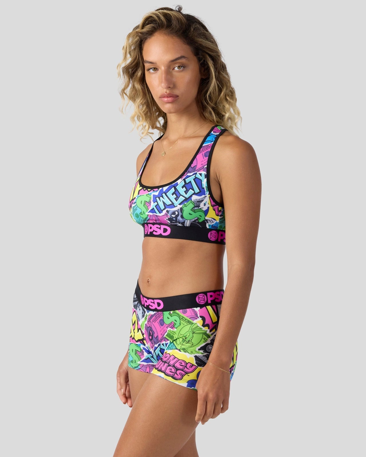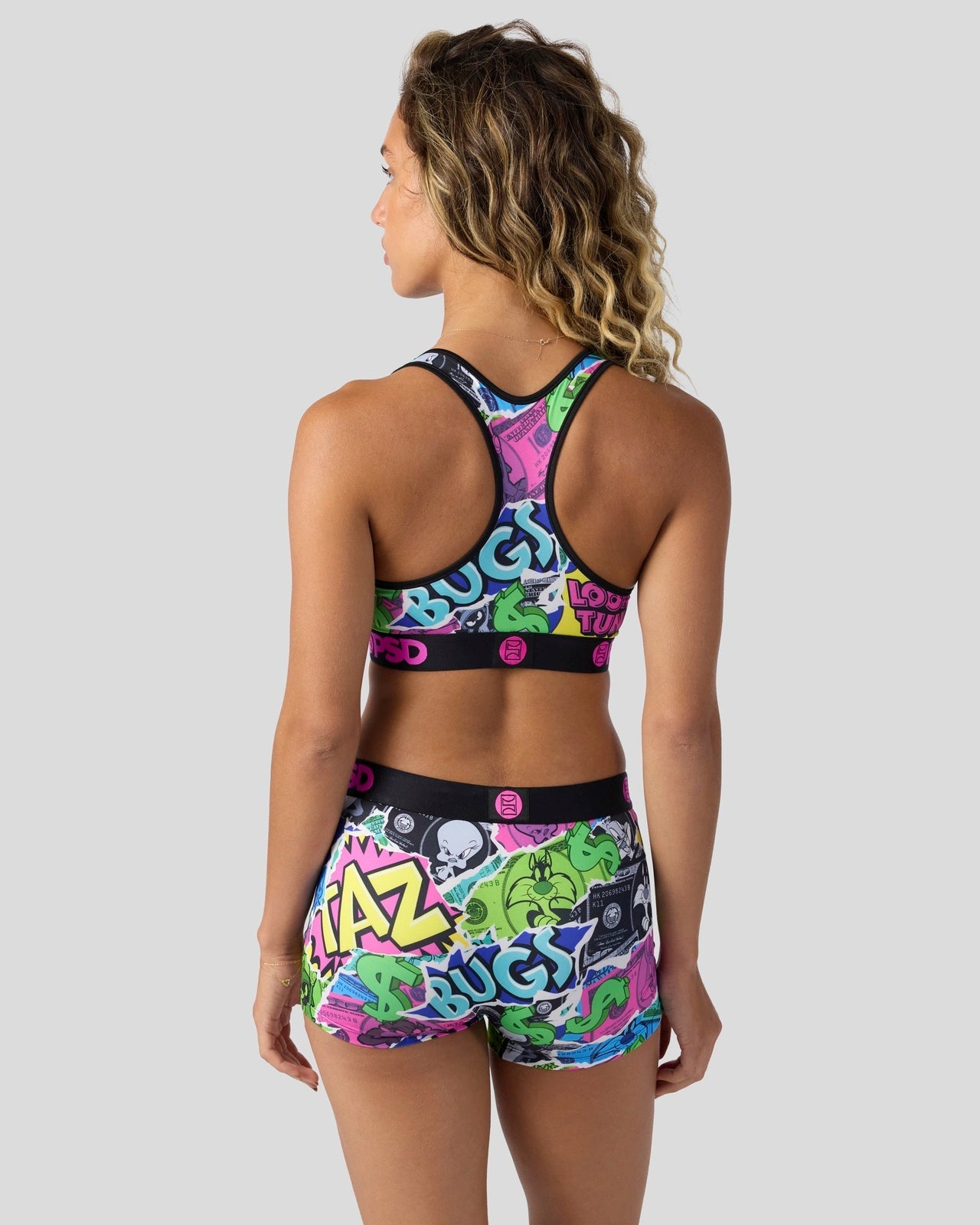 Get your Bugs bag with this new money-themed look from Looney Tunes x PSD. The Looney Money Sports Bra is made from a silky poly blend and is breathable yet slightly compressive. bringing you the comfort and support you need for everything you get into.