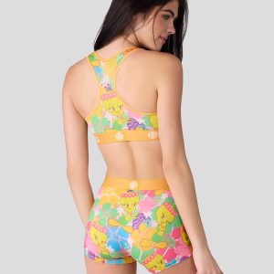 Tweety goes tropical with this new Looney Tunes x PSD drop. The Tweety Hawaii Sports Bra is made from a silky poly blend and is breathable yet slightly compressive. bringing you the comfort and support you need for everything you get into.