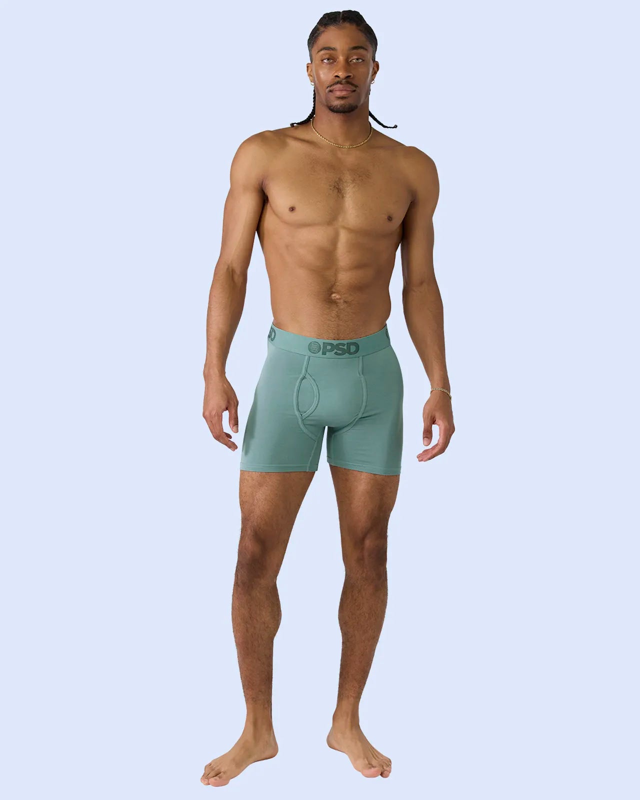 Luxe Modalunderwear built for a premium fit. next-level softness. and all-day comfort. Made with 91% Modal. this naturally breathable fabric blend was engineered for an elevated fit and feel with serious versatility. The Mid Length Jade Dust Luxe Modal briefs include four-way stretch that keeps you supported. a light-as-air feel. and our ultra-comfortable Signature WaistBand.
