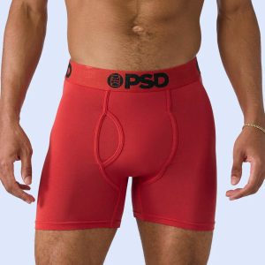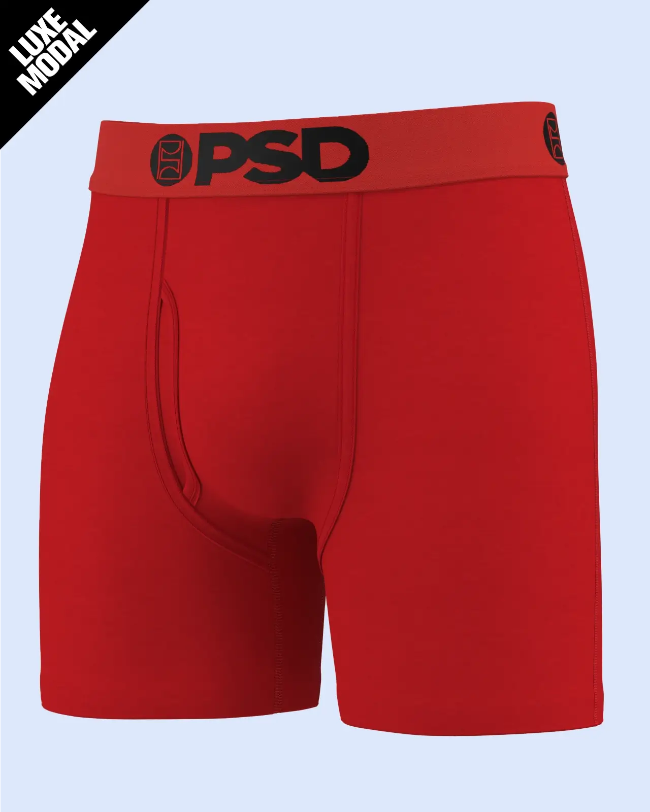 Luxe Modalunderwear built for a premium fit. next-level softness. and all-day comfort. Made with 91% Modal. this naturally breathable fabric blend was engineered for an elevated fit and feel with serious versatility. The Mid Length Metallic Red Luxe Modal briefs include four-way stretch that keeps you supported. a light-as-air feel. and our ultra-comfortable Signature WaistBand.