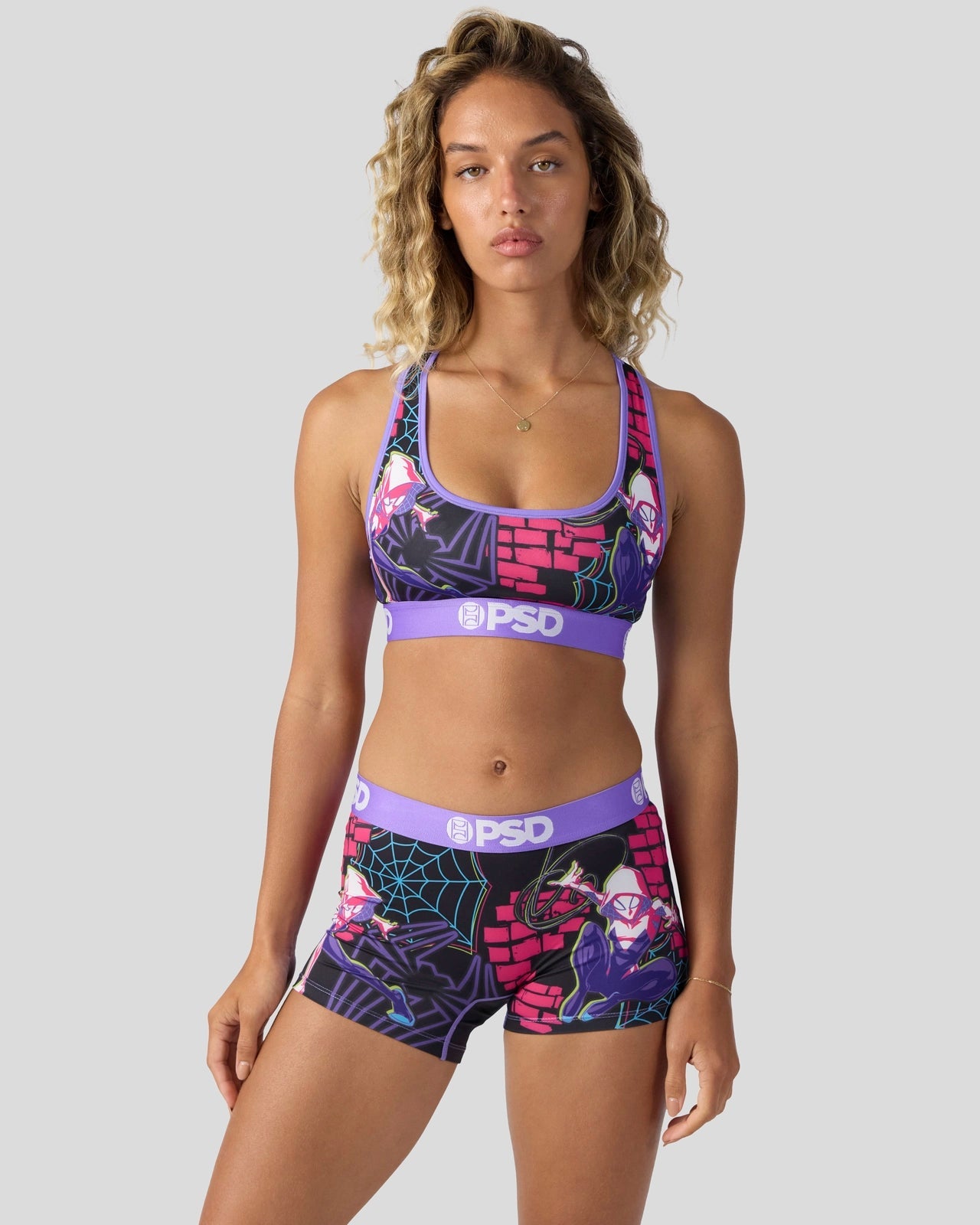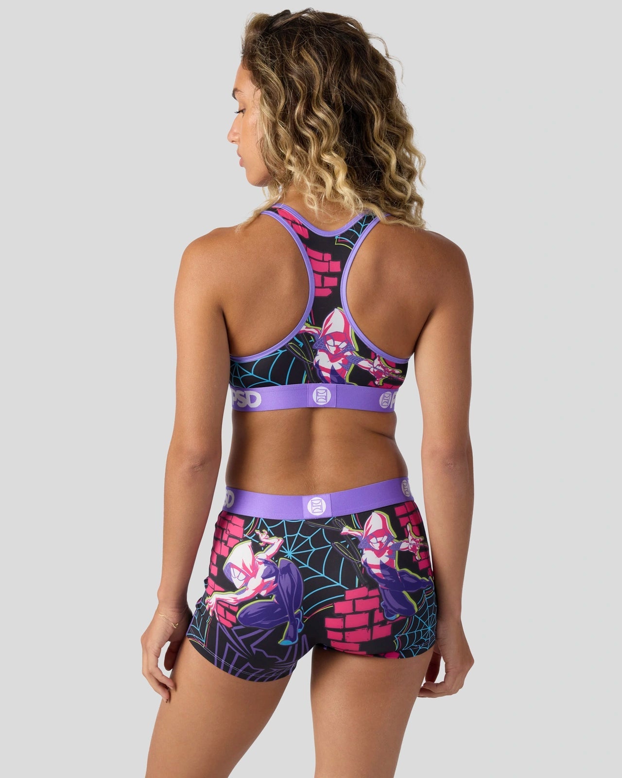 Part spider. all Super Heroine. Swing into action in this new look from Marvel. The Ghost-Spider Pop Boy Short is made from a silky poly blend with a comfortable full coverage. keep-you-in fit. The PSD boy shorts are perfect for everyday wear and working out.