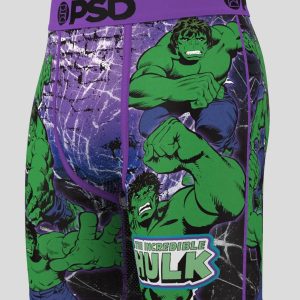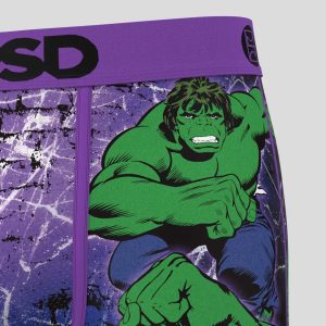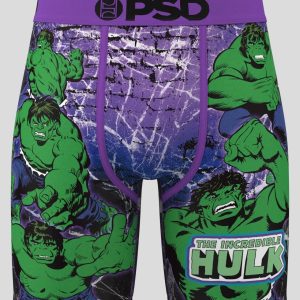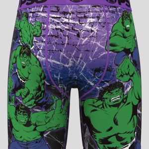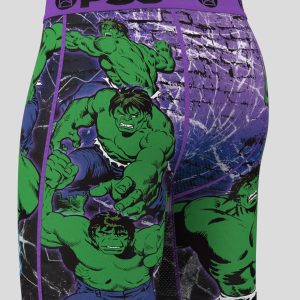 This design on the Hulk underwear spotlights Bruce Banner’s angrier alter-ego from Stan Lee’s Marvel Comics amid a background of purple brick walls just waiting to be smashed. With four-way stretch. a breathable MicroMesh pouch. and durable flatlock stitching style. these briefs were built to hold up for everything from everyday wear to the toughest workouts.
