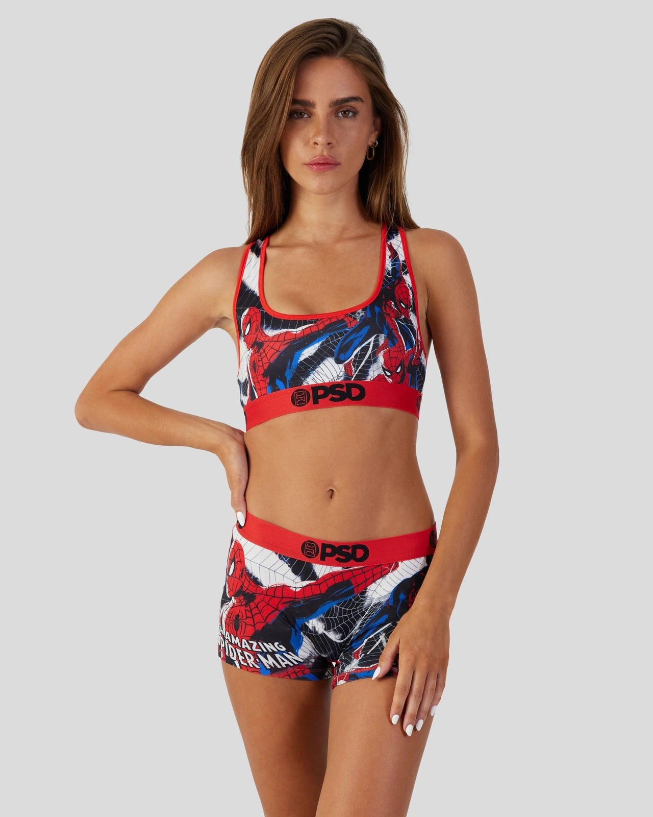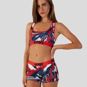 Spider-Man. also known as Peter Parker. is featured with much detail swinging into action across a tie-dye print on these sports bras. Made with our silky poly blend. the Spider-Man Bra is breathable yet slightly compressive. bringing you the touch of comfort and support you need for everything you get into. Whether you’re looking for unique gift ideas for someone or placing an online order for yourself. the Spider-Man Bra will have you prepared for any adventure.