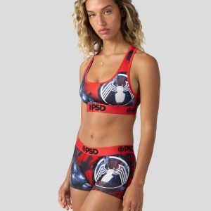 Warning: You might create a symbiotic relationship with this new Marvel look. The Venom Sports Bra is made from a silky poly blend and is breathable yet slightly compressive. bringing you the comfort and support you need for everything you get into.