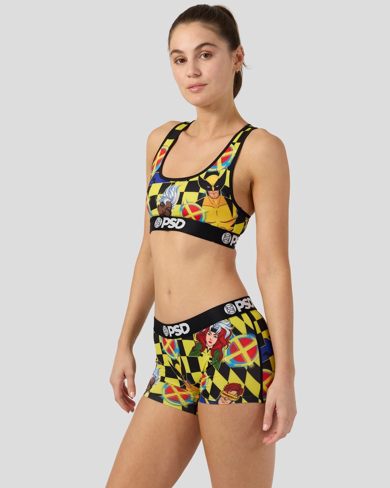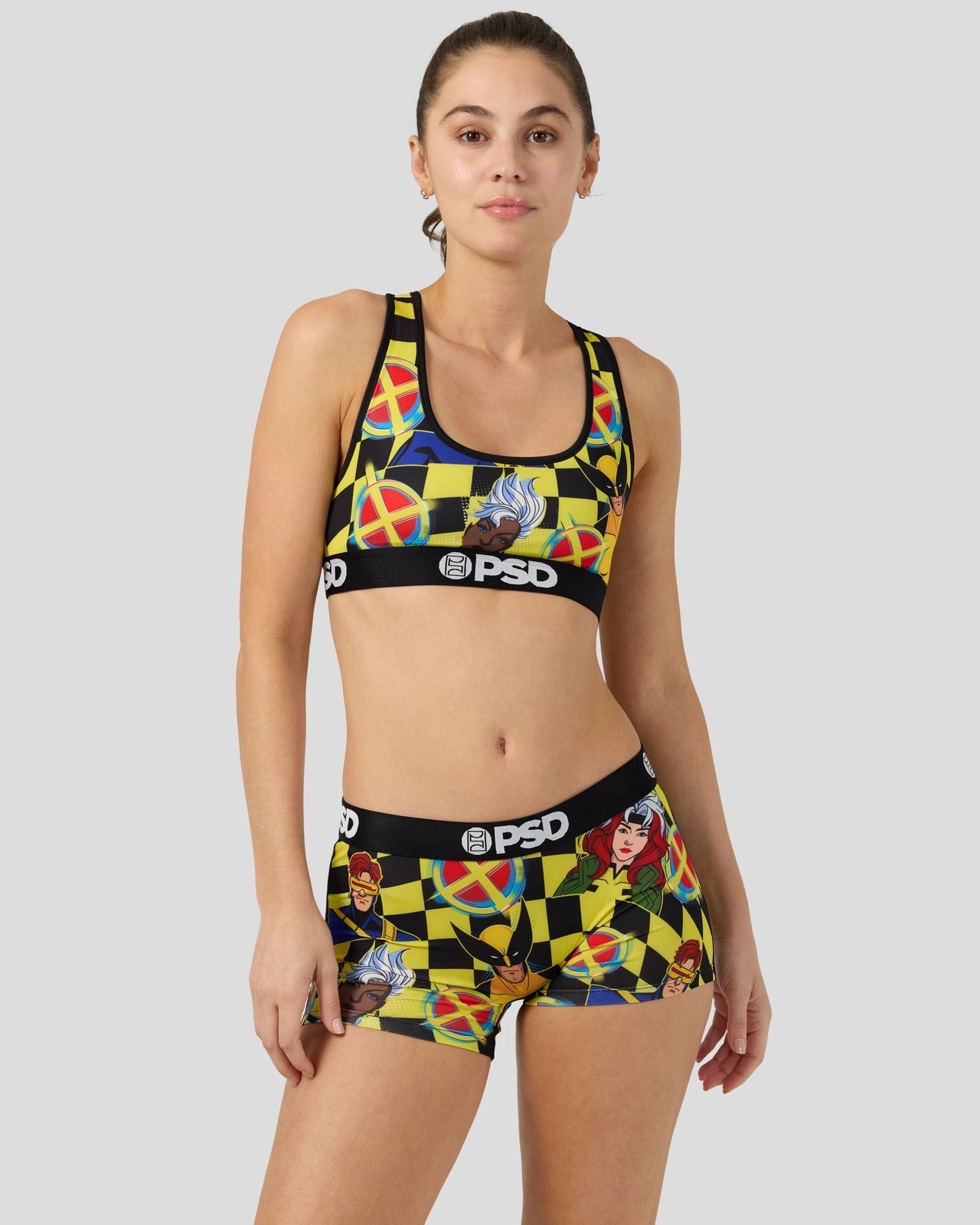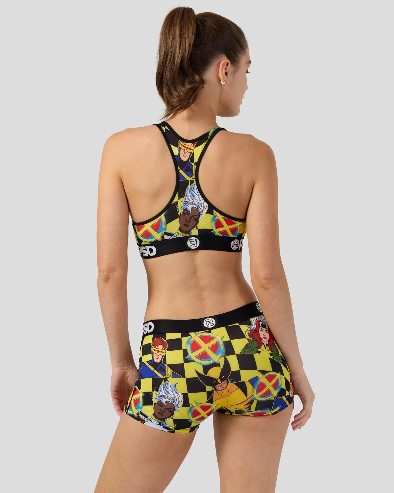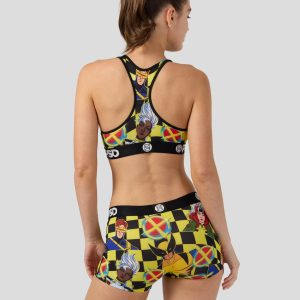 The Checkers Sports Bra includes your favorite X-Men mutants Wolverine. Cyclops. Storm. and Rogue. Made with our silky poly blend. the Sports Bra is breathable yet slightly compressive. bringing you the comfort and support you need for everything you get into.