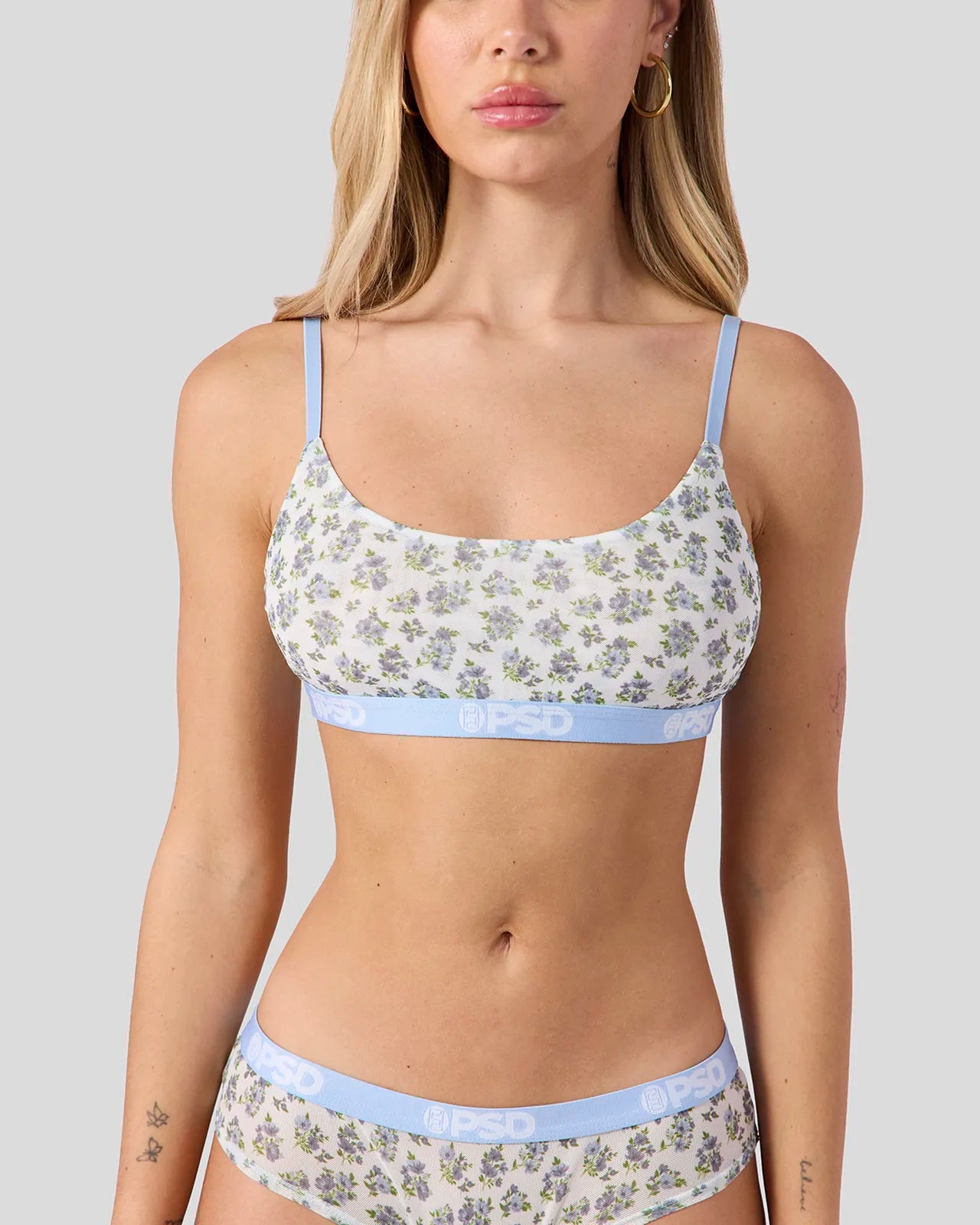 Featuring a spring-ready floral print. the Sky Blossom Mesh Scoop Bralette is fully lined and includes adjustable straps. a cute scoop neckline. and a soft microfiber band that won’t ride or rub. Made of silky smooth. ultra-fine mesh. You’ll feel equal parts comfy and sexy.
