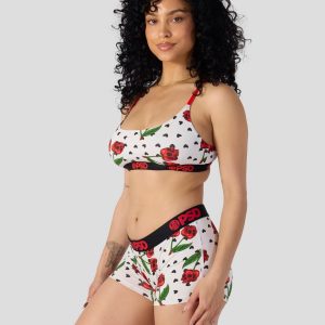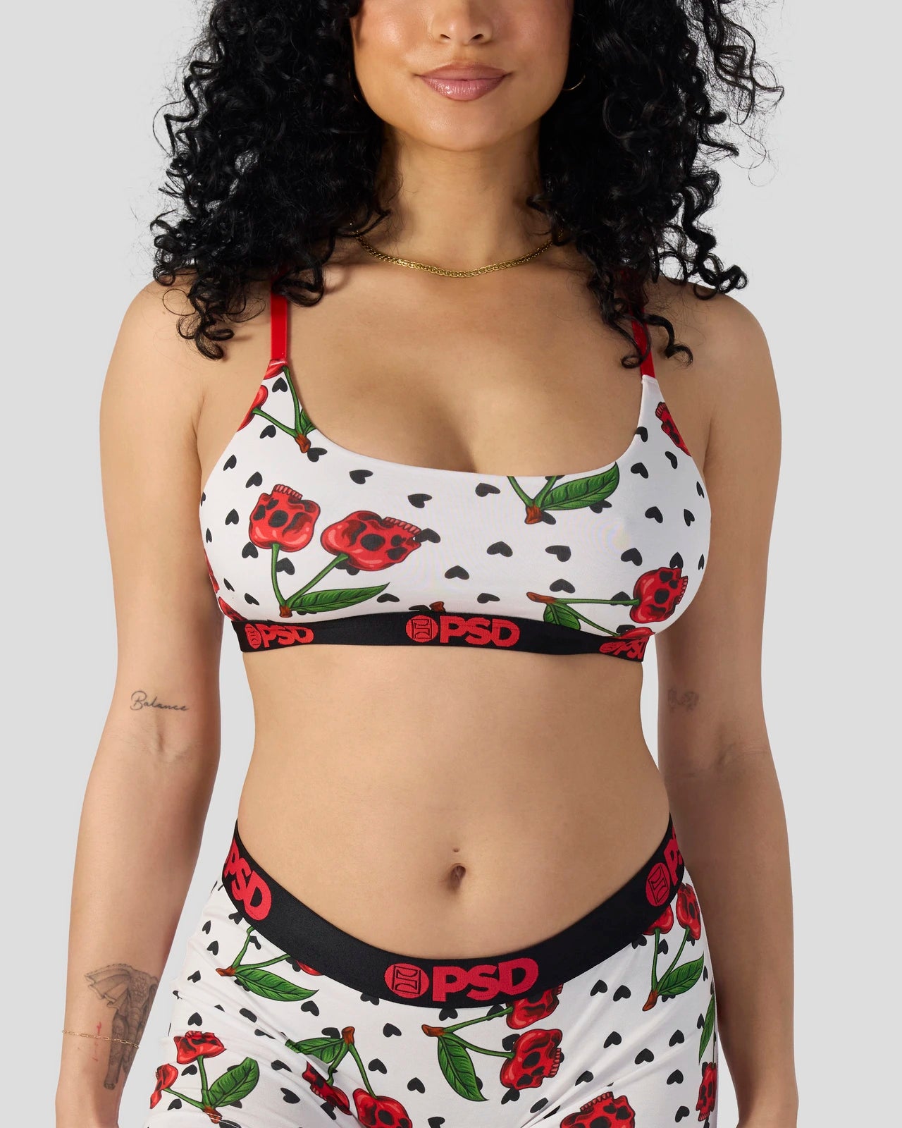 Our newest women’s print for fall is cute with a side of creepy. Made of super soft Modal. the Cherry Skullz Modal Scoop Bralette almost feels like you’re not wearing a bra at all. It’s fully lined and features include adjustable straps. a cute scoop neckline. and a soft microfiber band that won’t ride or rub.
