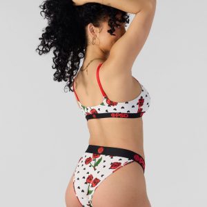 Our newest women’s print for fall is cute with a side of creepy. Made of premium modal. a breathable and buttery fabric that’s softer and stronger than cotton. the Cherry Skullz Modal Tanga is lightweight. breathable. and so easy to wear.