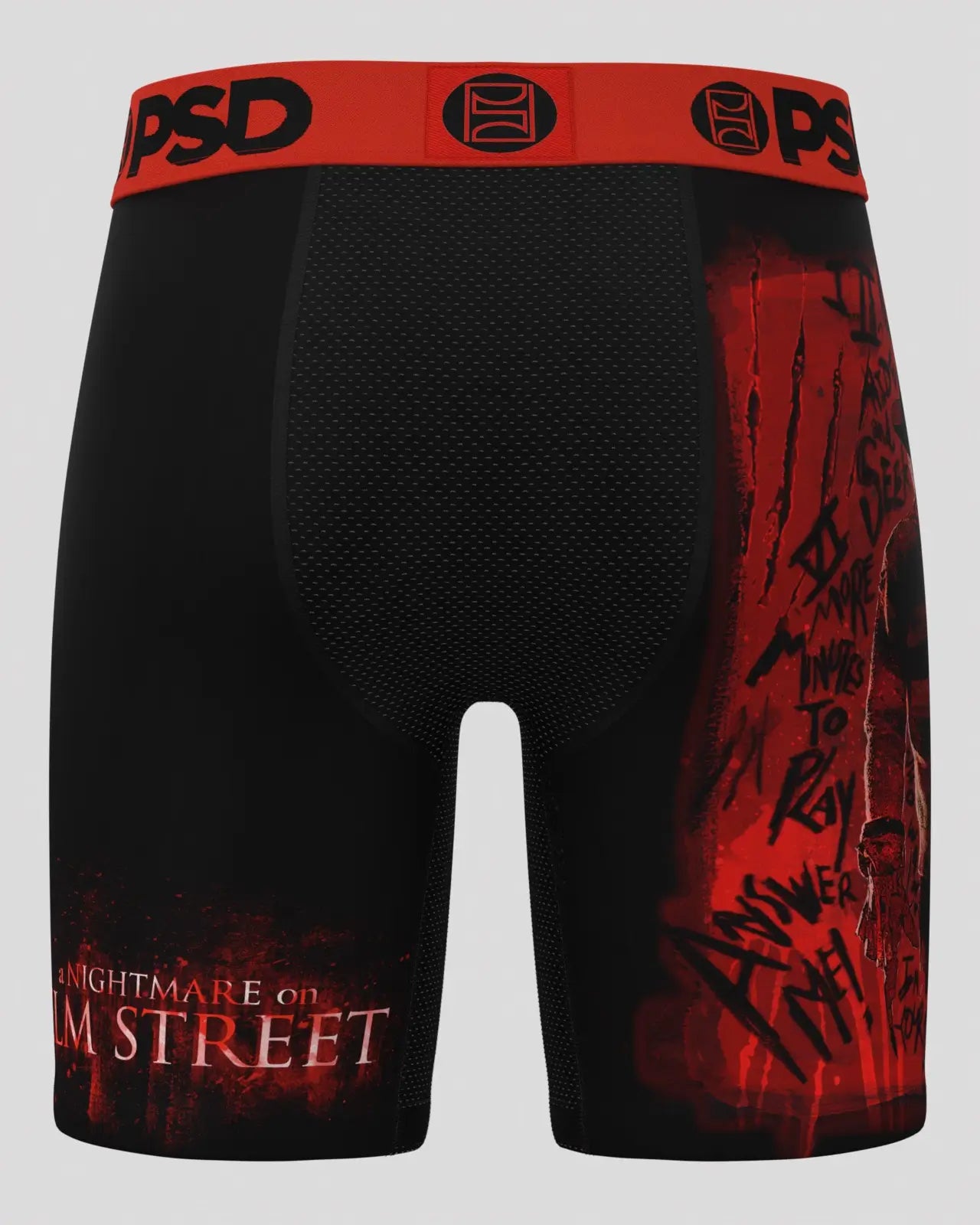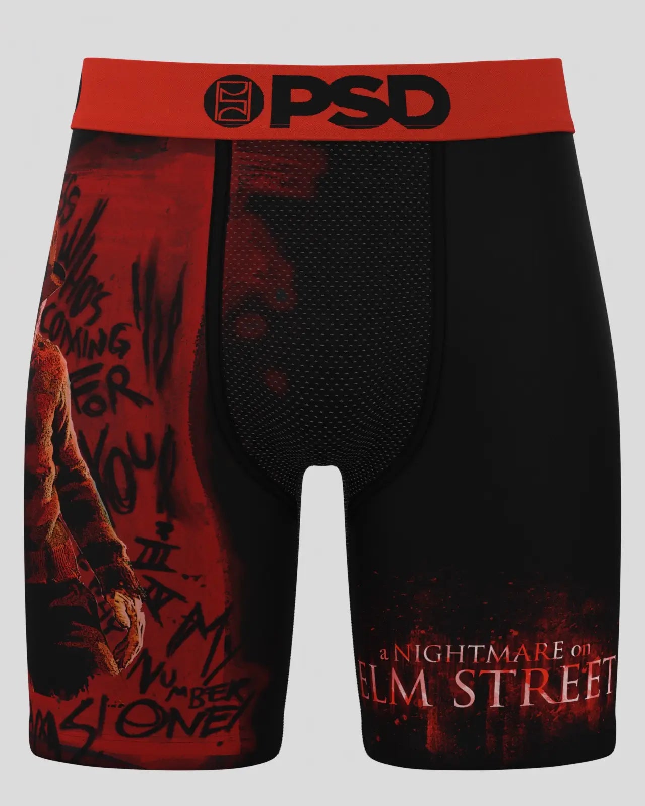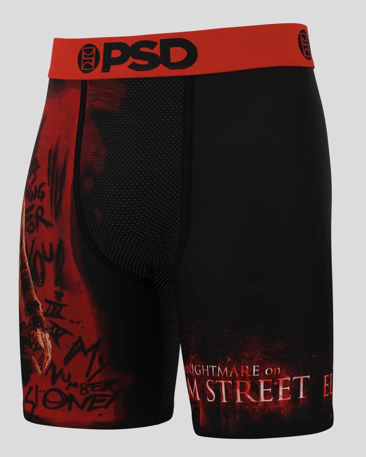 Warning: Fall asleep in this new pair from A Nightmare on Elm Street x PSD at your own risk. The Freddy Nightmare briefs include our ultra-comfortable Signature WaistBand. a breathable MicroMesh pouch. and four-way stretch. The PSD 7 Standard Length Briefs won’t roll or ride and were built for everything. from everyday wear to your toughest workouts.