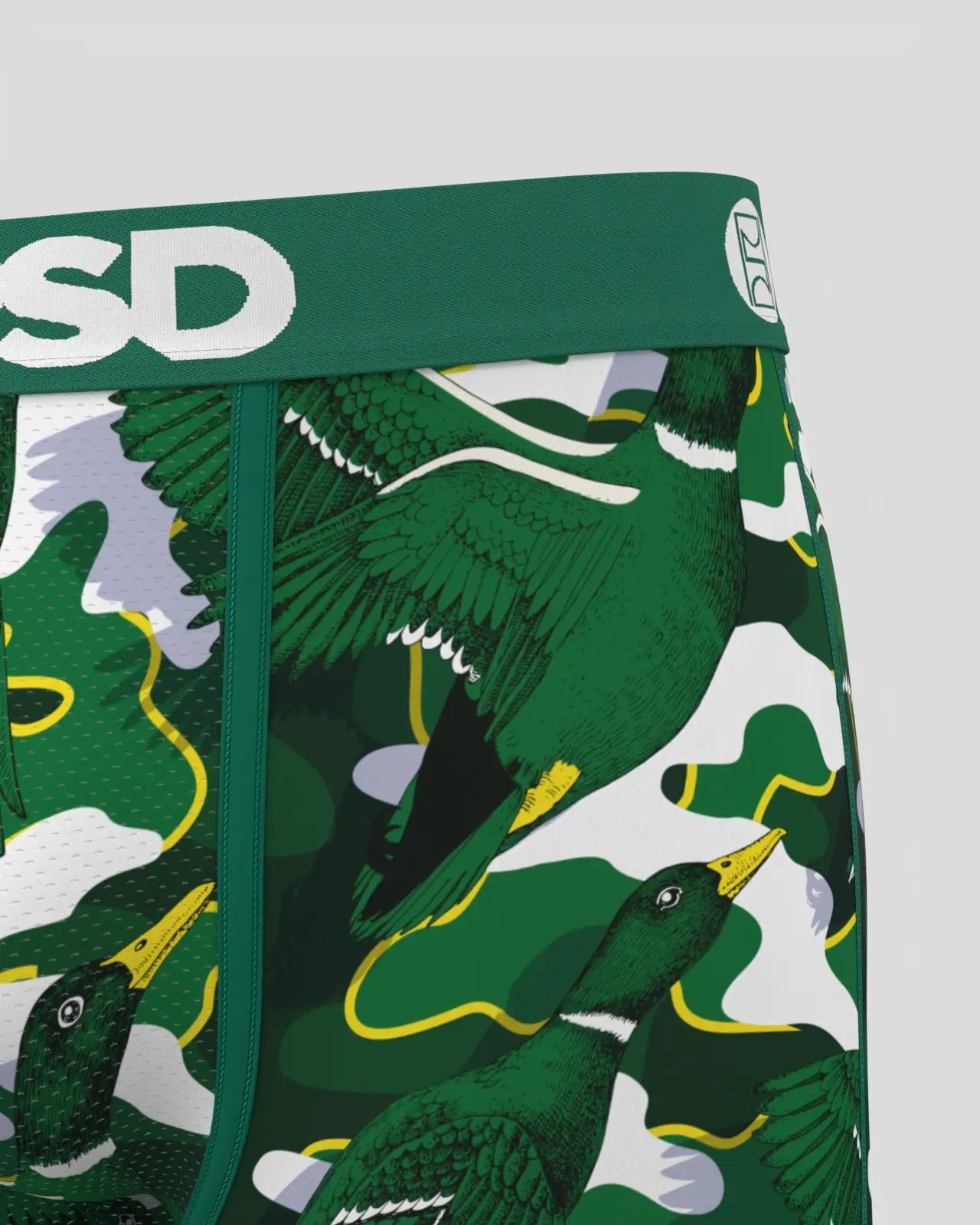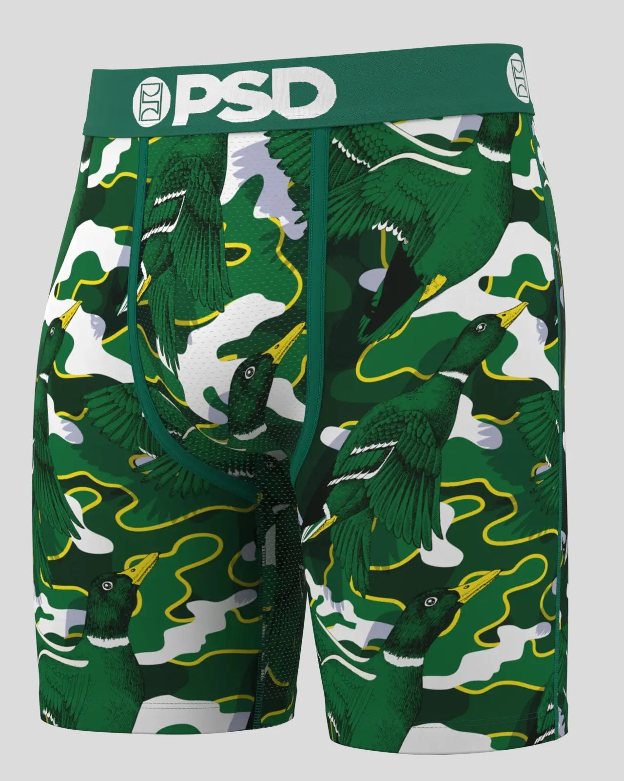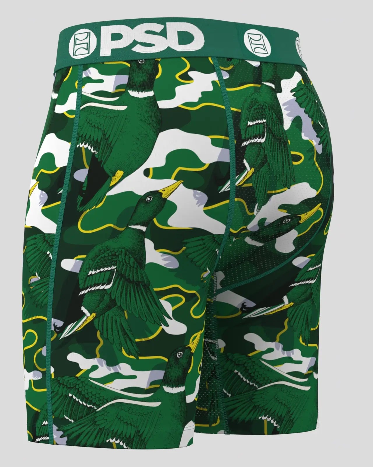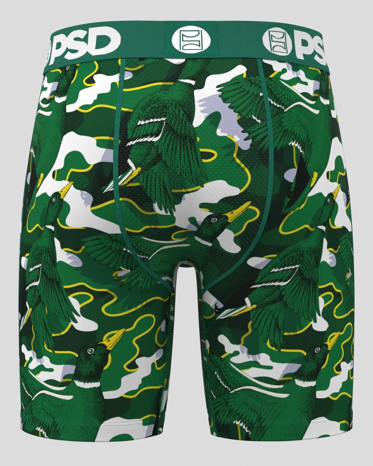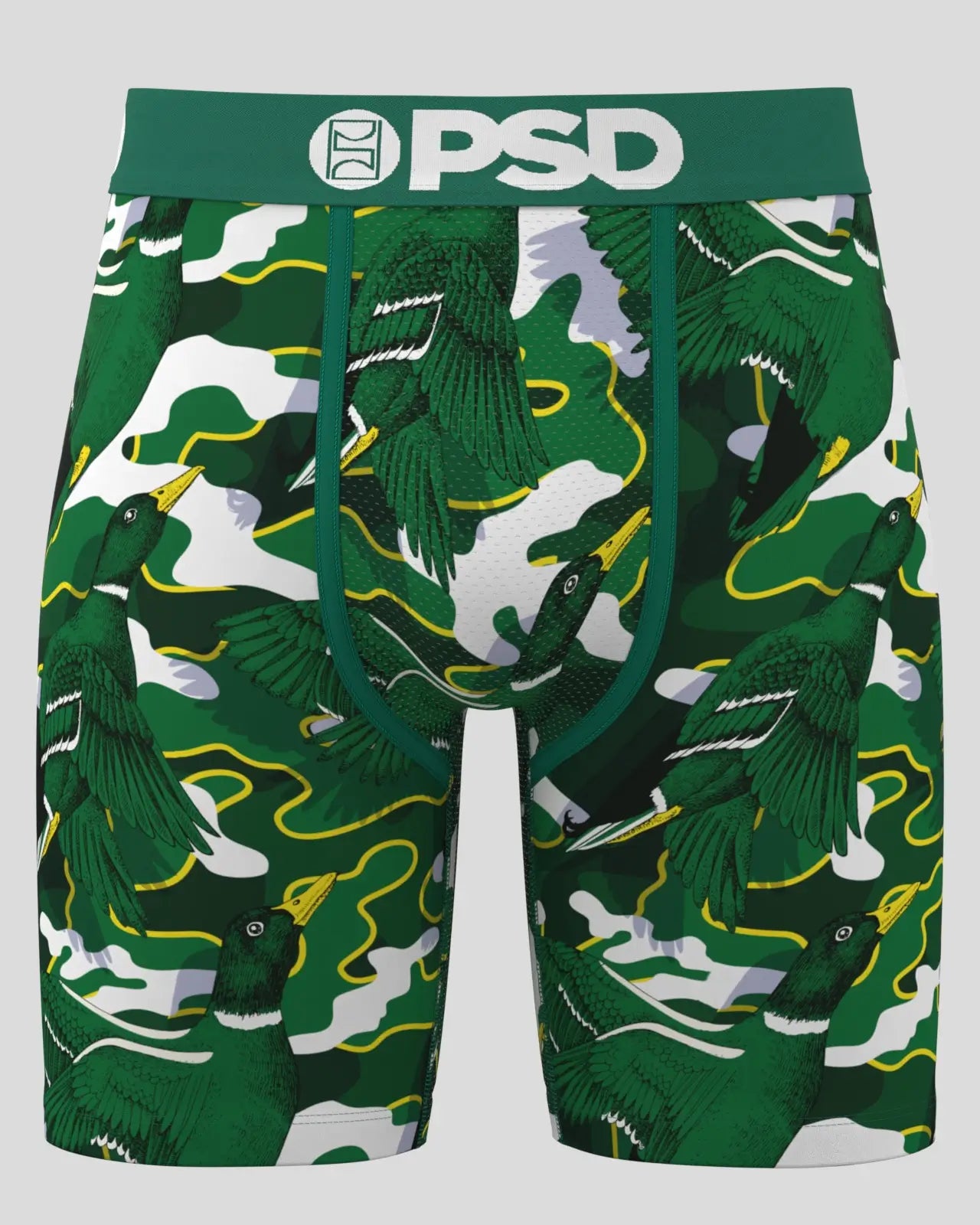 Mallards meet camo with this hunting-inspired print. The Open Season briefs include our ultra-comfortable Signature WaistBand. a breathable MicroMesh pouch. and four-way stretch. The PSD 7 Standard Length Briefs won’t roll or ride and were built for everything. from everyday wear to your toughest workouts.