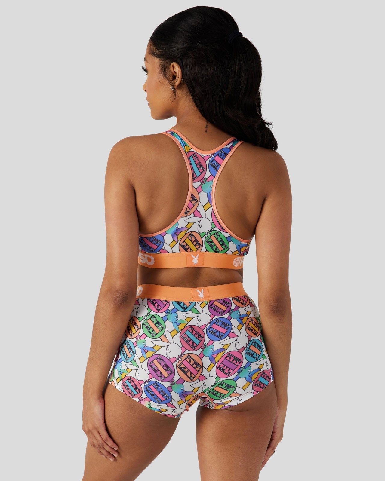 Pretty in pastel. the latest from Playboy x PSD is the perfect way to add some spring to your intimates drawer. The Women’s Geo Sports Bra is made from a silky poly blend and is breathable yet slightly compressive. bringing you the comfort and support you need for everything you get into. This style is available in sizes XS – 5XL.