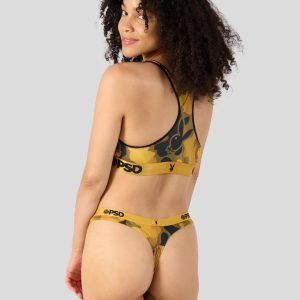 Strike gold with this new bra from Playboy x PSD. The Silk Gold Sports Bra is made from a silky poly blend and is breathable yet slightly compressive. bringing you the comfort and support you need for everything you get into.