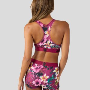 Featuring a lush and tropical floral print. the Plumeria Sports Bra is made from a silky poly blend that’s breathable yet slightly compressive. bringing you the comfort and support you need for everything you get into.