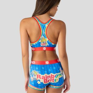 Rainbow Brite shows off her sporty side with this new retro-inspired drop. The Baller Sports Bra is made from a silky poly blend and is breathable yet slightly compressive. bringing you the comfort and support you need for everything you get into.