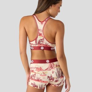 Put a little west in your wear with this new look. The Ranch Life Sports Bra is made from a silky poly blend and is breathable yet slightly compressive. bringing you the comfort and support you need for everything you get into.