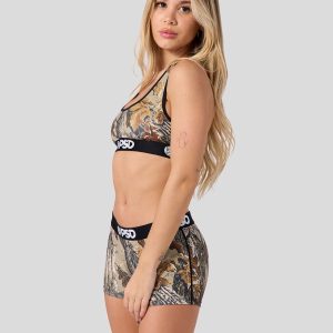 The latest from Realtree x PSD is a modern take on their classic. rugged camo print. The Xtra Grey Sports Bra is made from a silky poly-blend that’s breathable yet slightly compressive. bringing you the comfort and support you need for everything you get into.