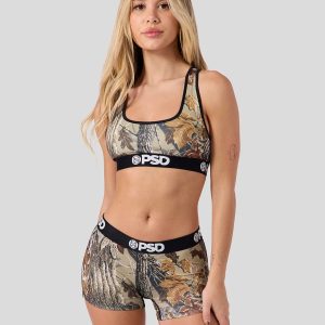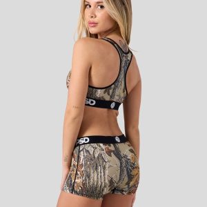 The latest from Realtree x PSD is a modern take on their classic. rugged camo print. The Xtra Grey Boy Short is made from a silky poly-blend with a comfortable. full-coverage. keep-you-in fit. The PSD boy shorts are perfect for everyday wear and working out.