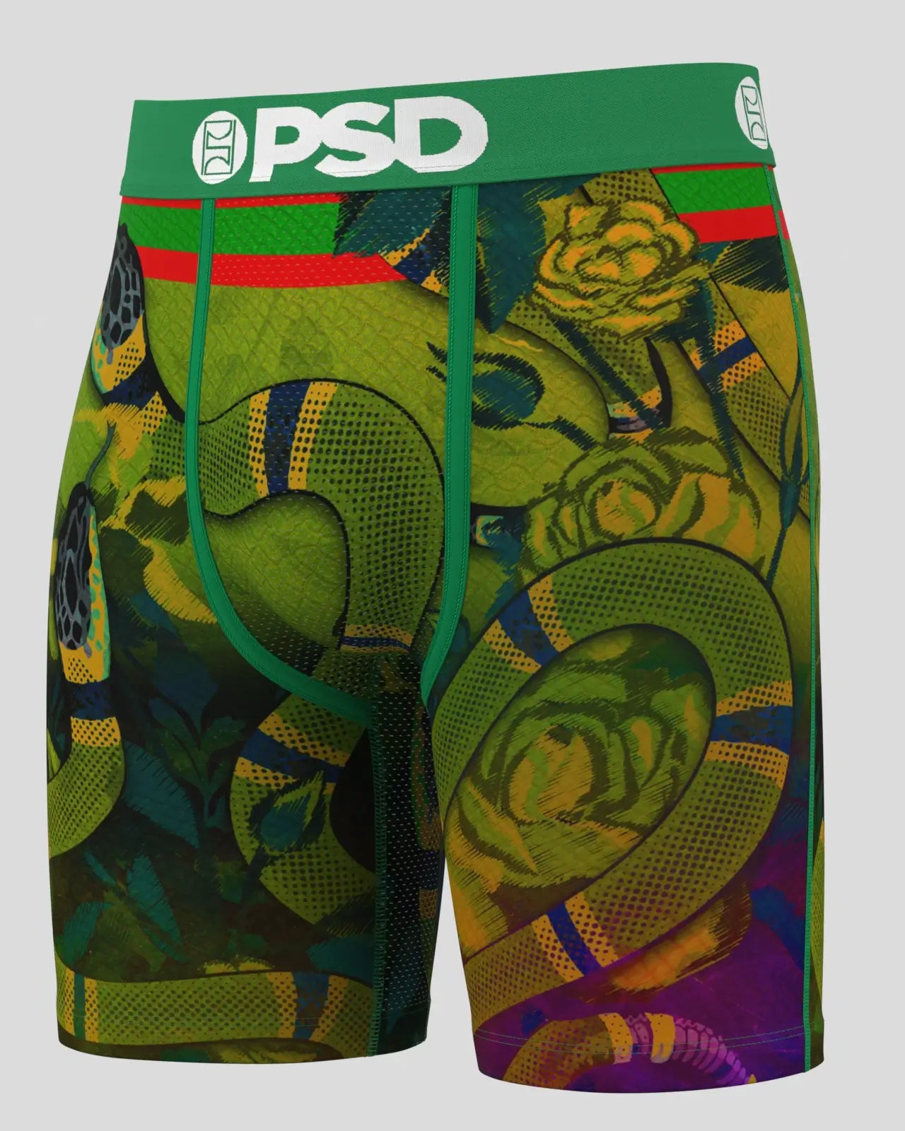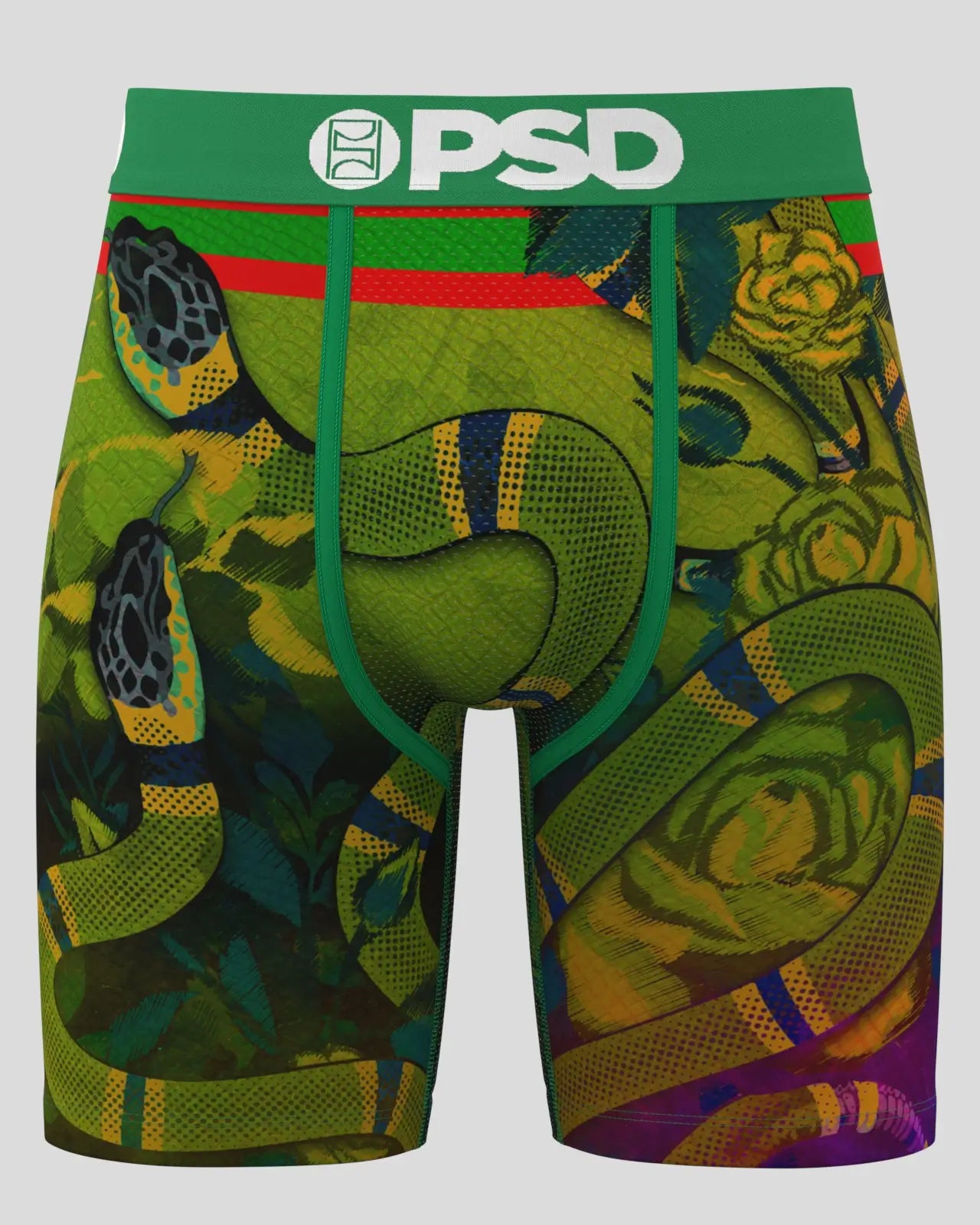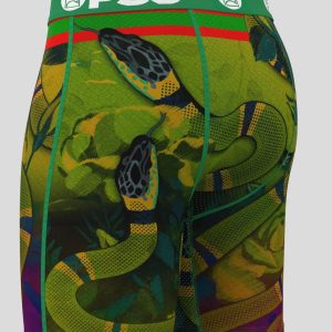 It’s time to slither into this new snake-printed pair. The Reptile King briefs include our ultra-comfortable Signature WaistBand. a breathable MicroMesh pouch. and four-way stretch. The PSD 7 Standard Length Briefs won’t roll or ride and were built for everything. from everyday wear to your toughest workouts.