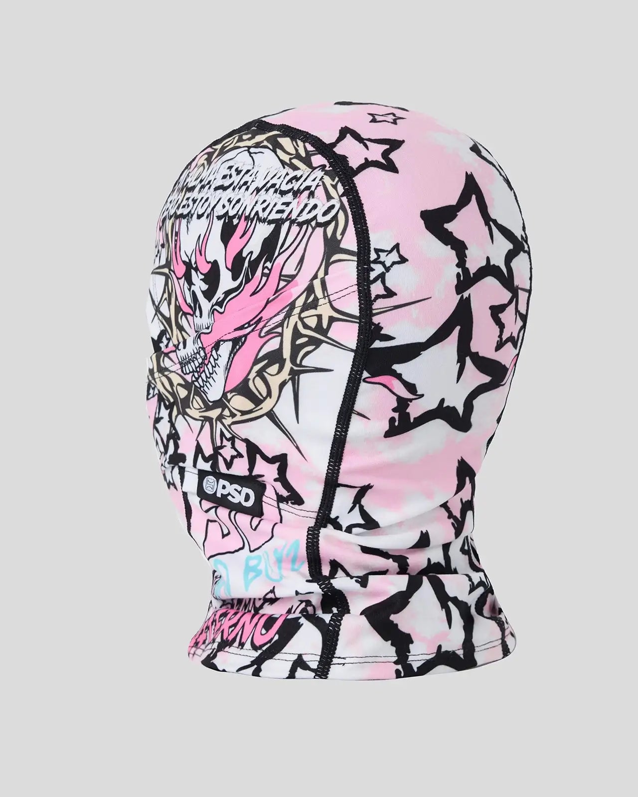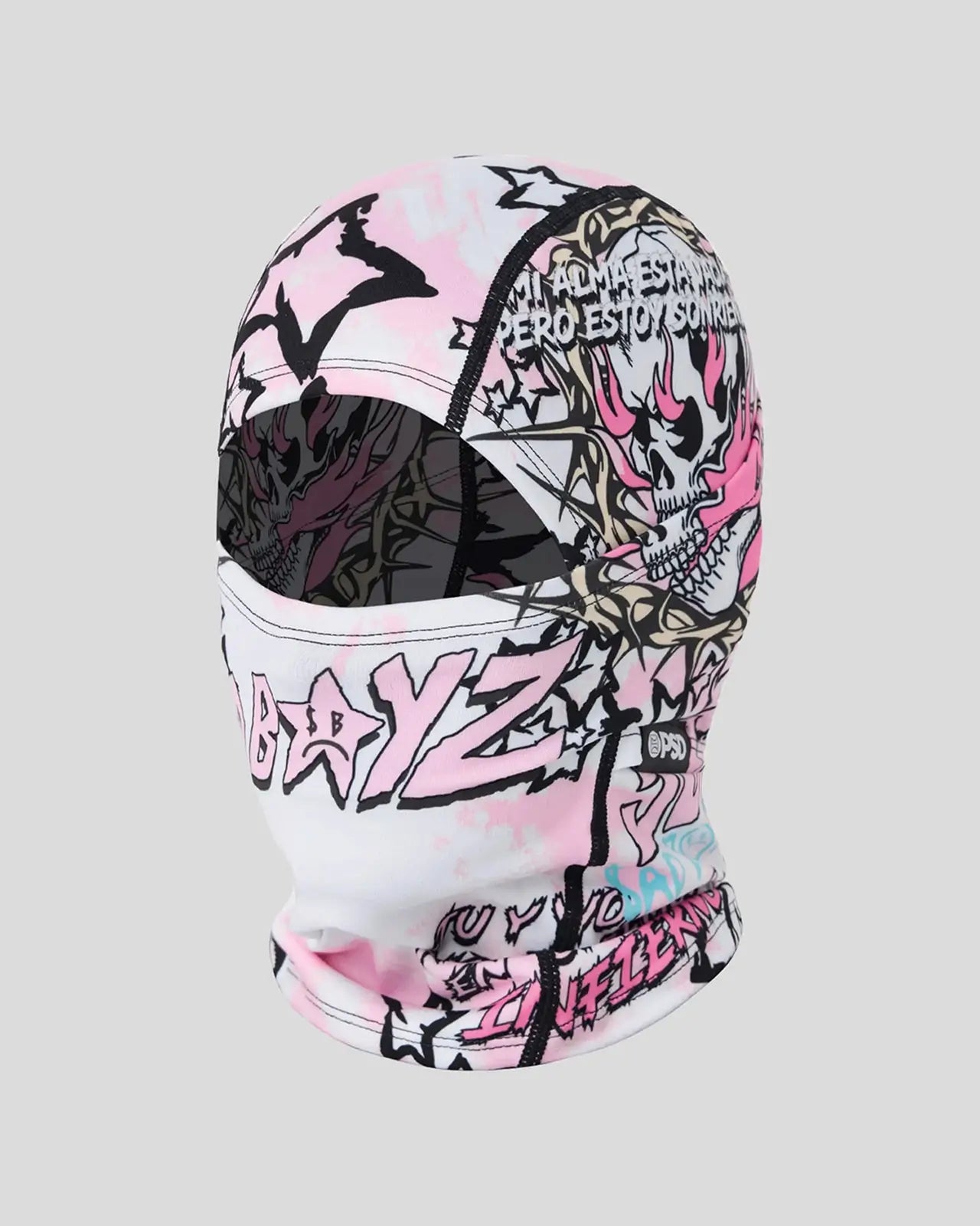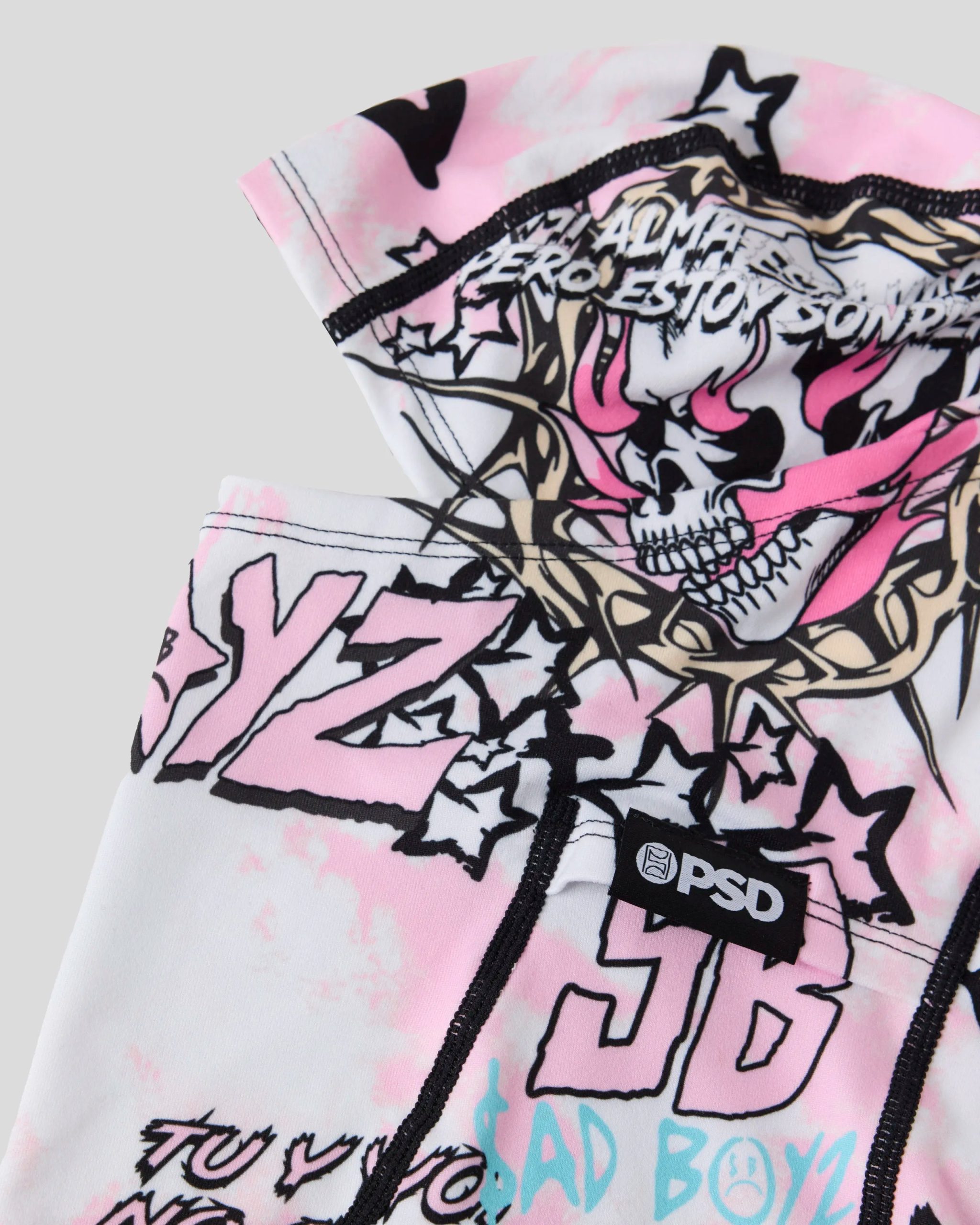 The Infierno Hooded Mask from Sad Boyz x PSD pairs street style with cold-weather comfort. Made of a breathable poly blend brushed on the inside for an extra soft feel on the face. the mask has flat seams and can also be worn as a neck gaiter.